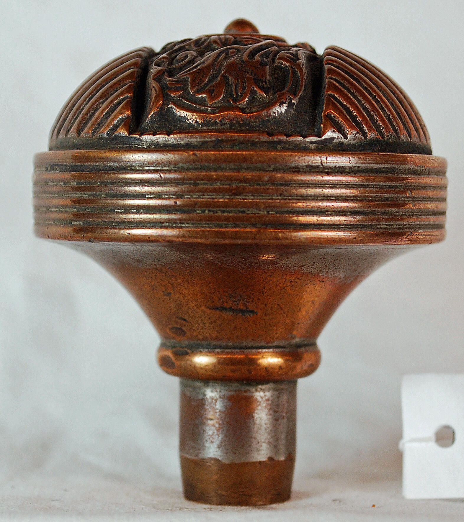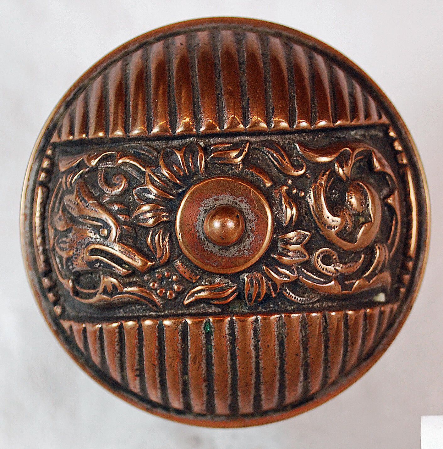 Design Name: Columbian Manufacture: Reading Hdwr. Co. Style: Italian Renaissance Material: Brass Manufacturing Method: Cast Surface Finish: Plated, Silver VDA Classification: Asymmetric VDA Number: B - 214 Shape: Domed Patent Specifics: Lock Type (If Applicable): Inscription/Makers Mark: Inscription Text: Comments: Forehead Motif. Very Little Silver Plating Left.