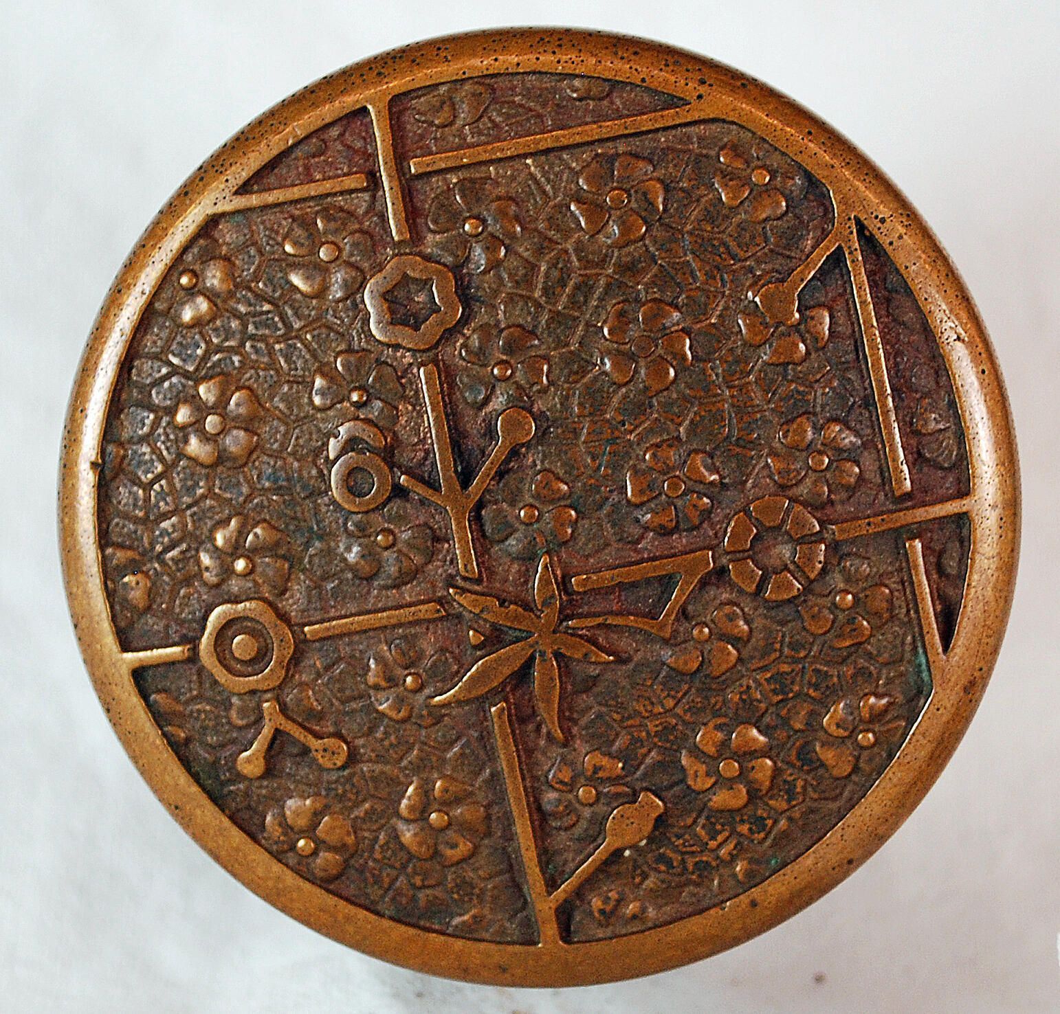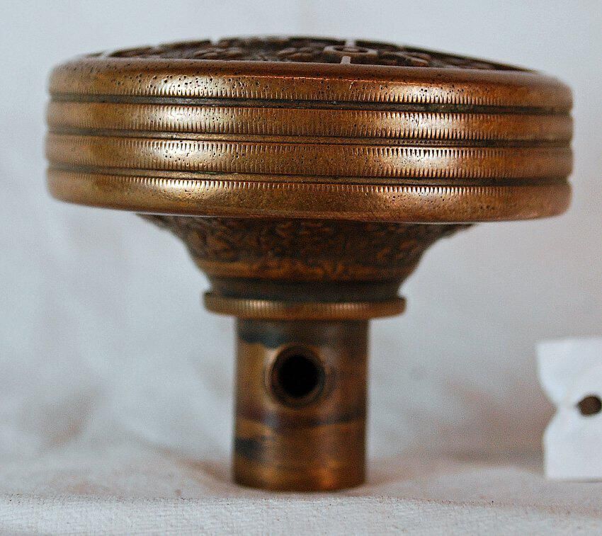Design Name: Ekado Manufacture: Sargent & Co. Style: Aesthetic Material: Bronze Manufacturing Method: Cast Surface Finish: Unpolished (VDA-Doorknobs Only): VDA Classification: Asymmetric VDA Number: B - 101 Shape: Cylindrical Patent Specifics: Lock Type (If Applicable): Inscription/Makers Mark: Inscription Text: Comments: Original Patina.