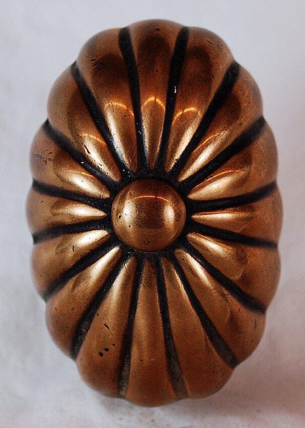 Design Name: Fluted Manufacture: Phoenix Lock Works Style: Material: Bronze Manufacturing Method: Cast Surface Finish: Aged / Unpolished VDA Classification: Oval VDA Number: N - 150 Shape: Oval / Egg, Domed Patent Specifics: Lock Type (If Applicable): Inscription/Makers Mark: Inscription Text: Comments: Original Petina
