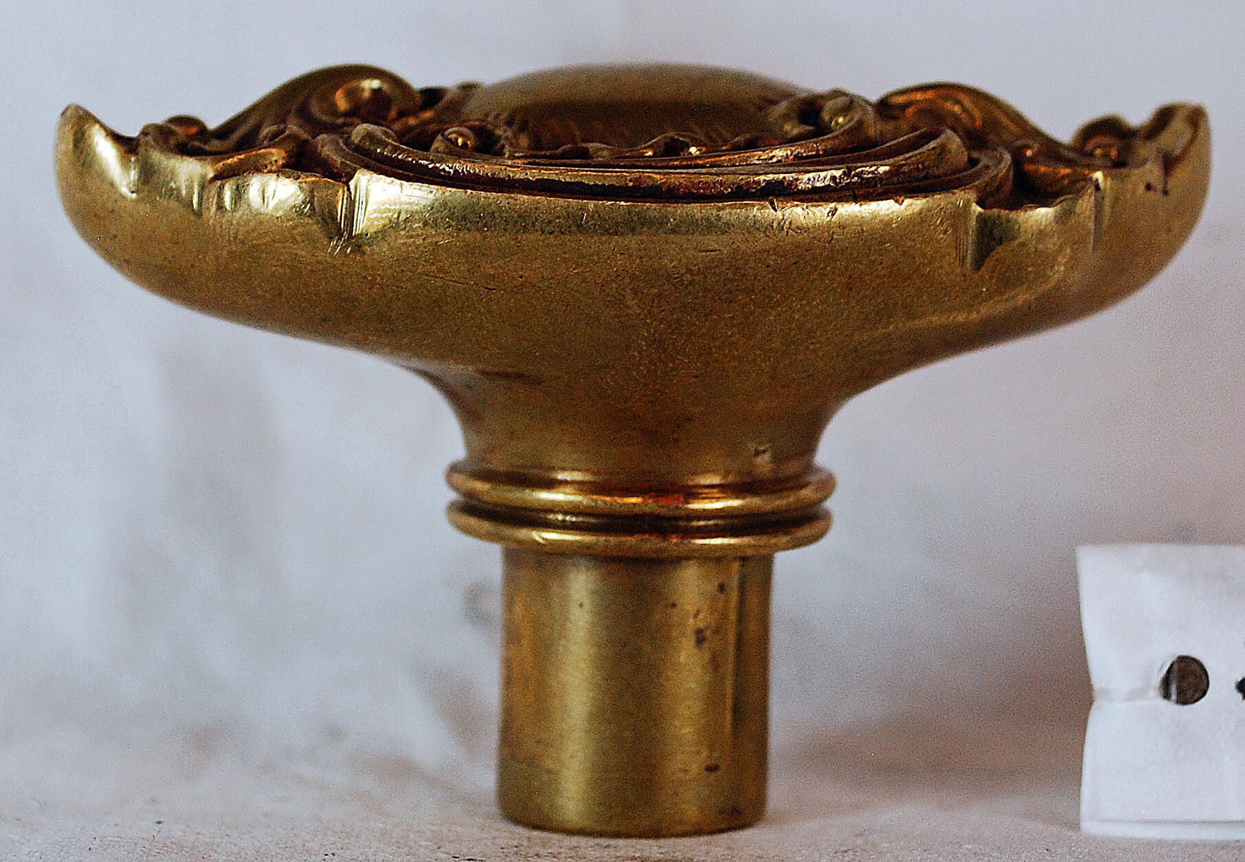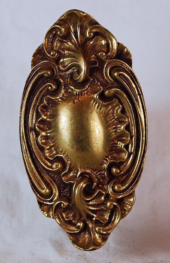 Design Name: St. Denis Manufacture: Corbin Style: Rococo Material: Brass Manufacturing Method: Cast Surface Finish: Aged / Unpolished VDA Classification: Oval VDA Number: N - 106 Shape: Oval / Egg Patent Specifics: Lock Type (If Applicable): Inscription/Makers Mark: Inscription Text: Comments: