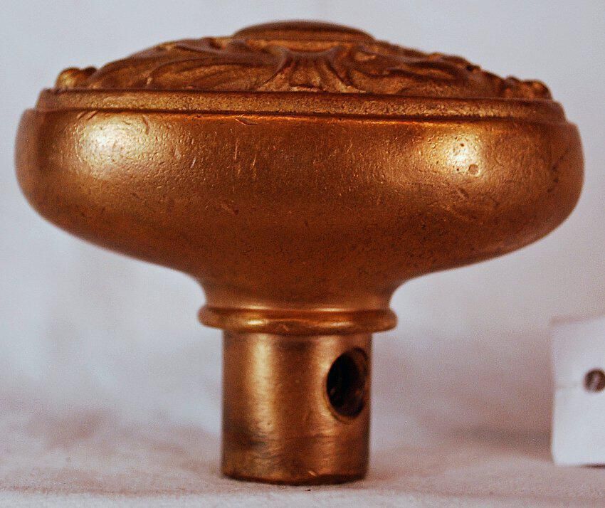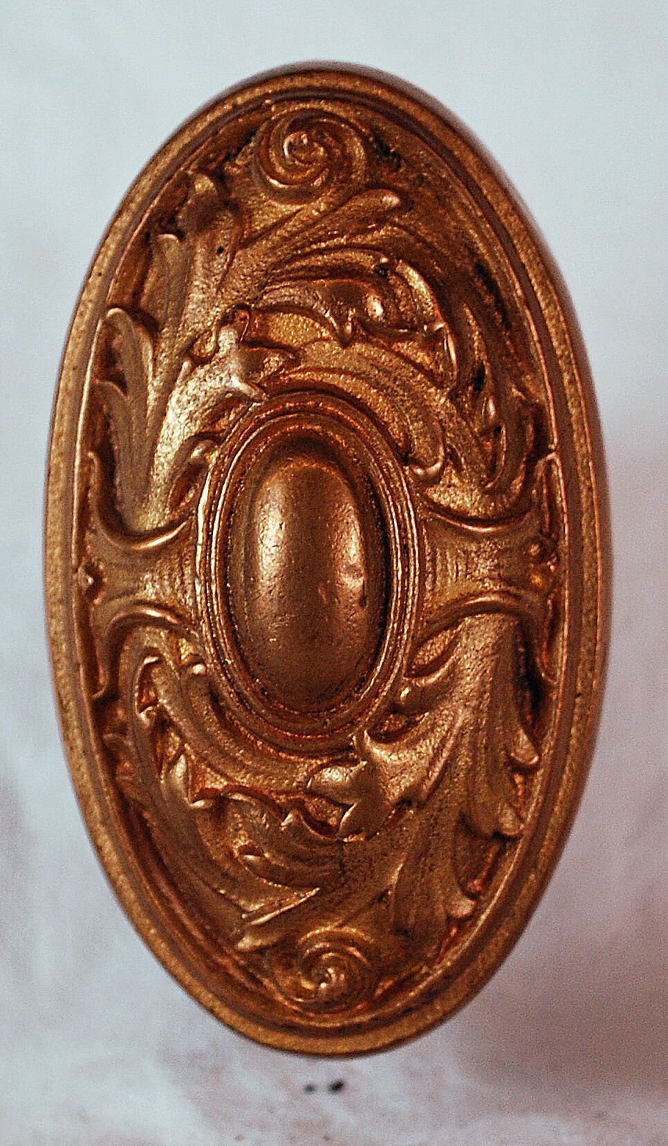 Design Name: Marseilles Manufacture: Corbin Style: French Renaissance Material: Bronze Manufacturing Method: Cast Surface Finish: Aged / Unpolished VDA Classification: VDA Number: N - 137 Shape: Oval / Egg Patent Specifics: Lock Type (If Applicable): Inscription/Makers Mark: Inscription Text: Comments: Small Dent on Side.