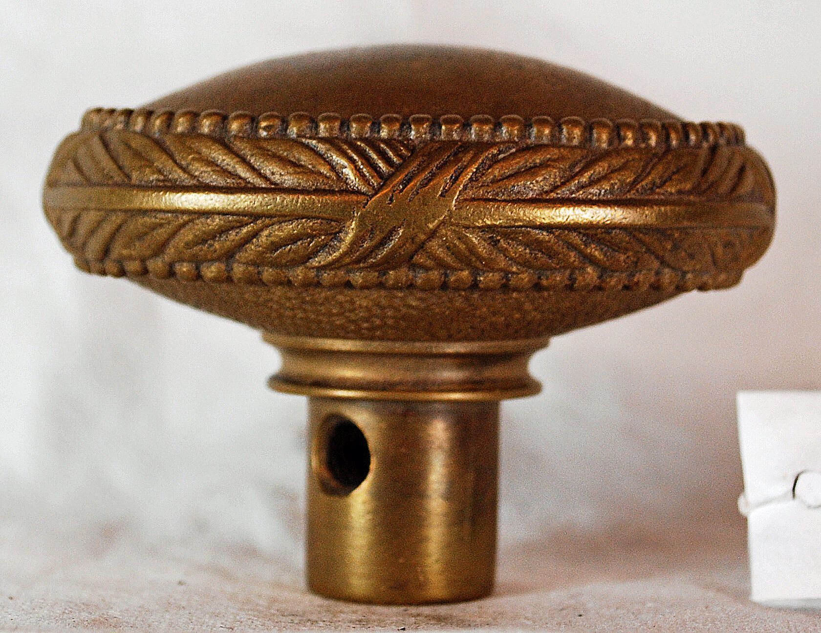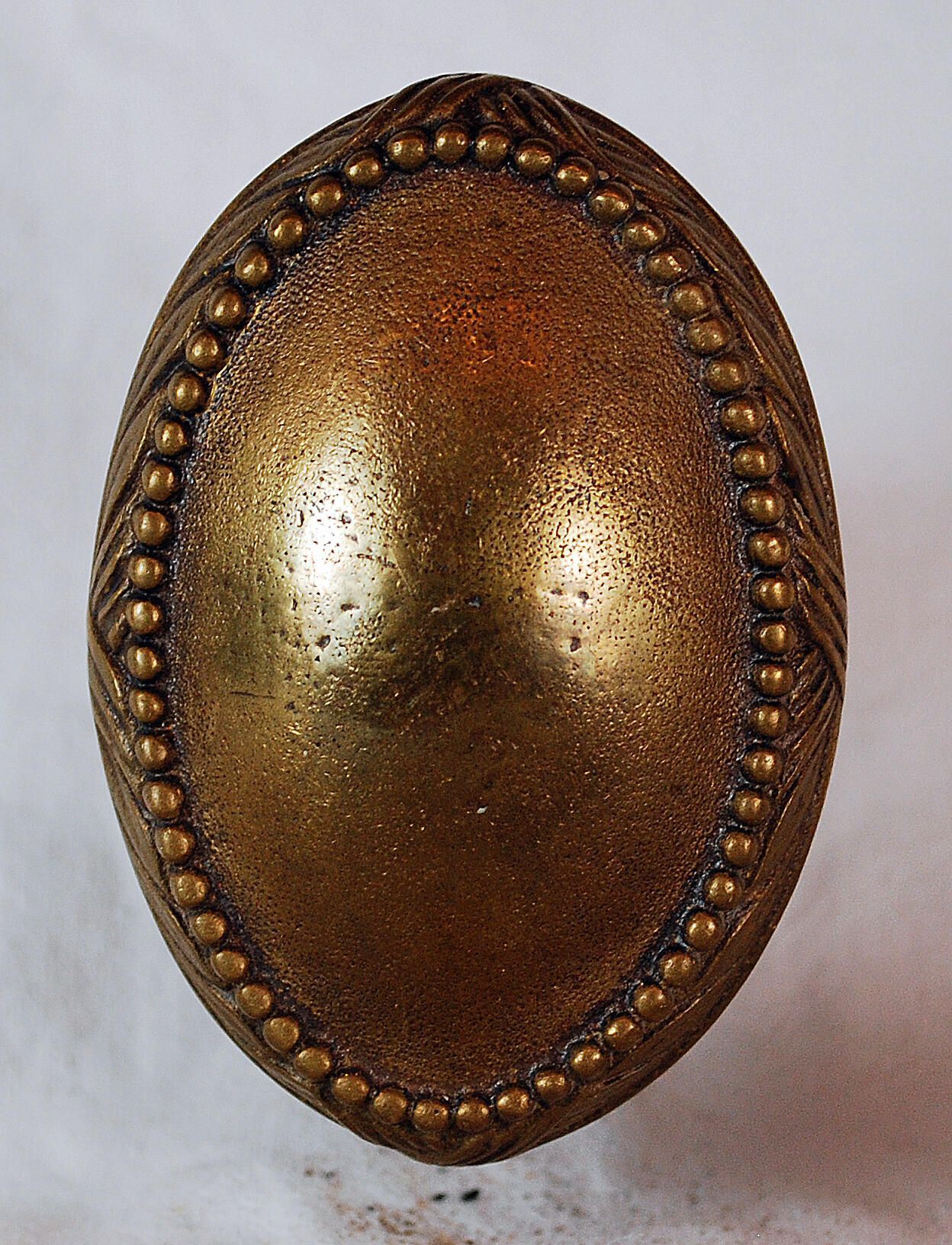 Design Name: Manufacture: Style: Material: Brass Manufacturing Method: Cast Surface Finish: Aged / Unpolished VDA Classification: VDA Number: Shape: Oval / Egg Patent Specifics: Lock Type (If Applicable): Inscription/Makers Mark: Inscription Text: Comments: .Texture Worn Off on Dome.