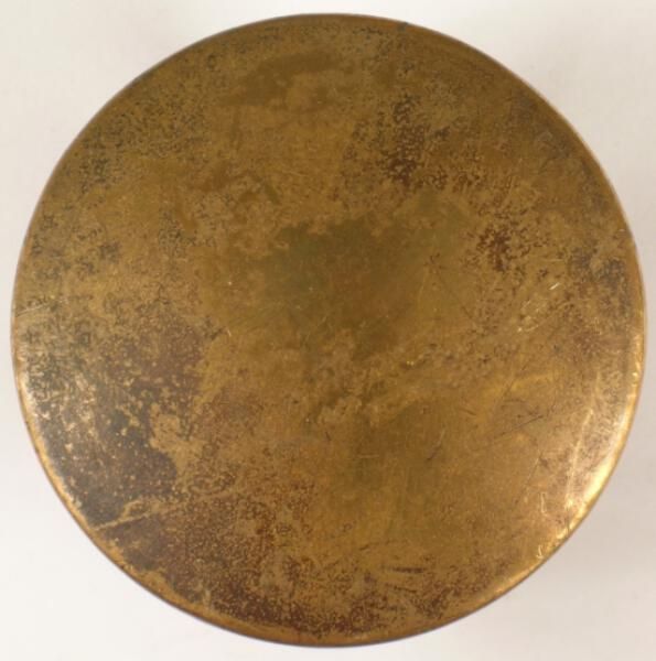 Design Name: Manufacturer: Style: Material: Brass Manufacturing Method: Surface/Finish: Aged / Unpolished VDA Classification: VDA Number: Shape: Domed / Drum Patent Specifics: Lock Type (If Applicable): Inscription Makers Mark: Inscription Text: Comments: On Steele Spindle