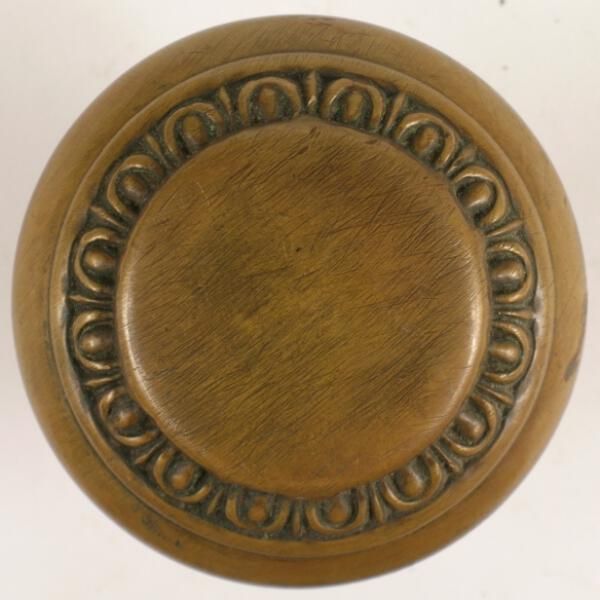 Design Name: Manufacturer: Style: Material: Brass Manufacturing Method: Wrought / Stamped Surface/Finish: Aged / Unpolished VDA Classification: M VDA Number: Shape: Domed Patent Specifics: Lock Type (If Applicable): Inscription Makers Mark: Inscription Text: Comments: Egg and Dart Variation