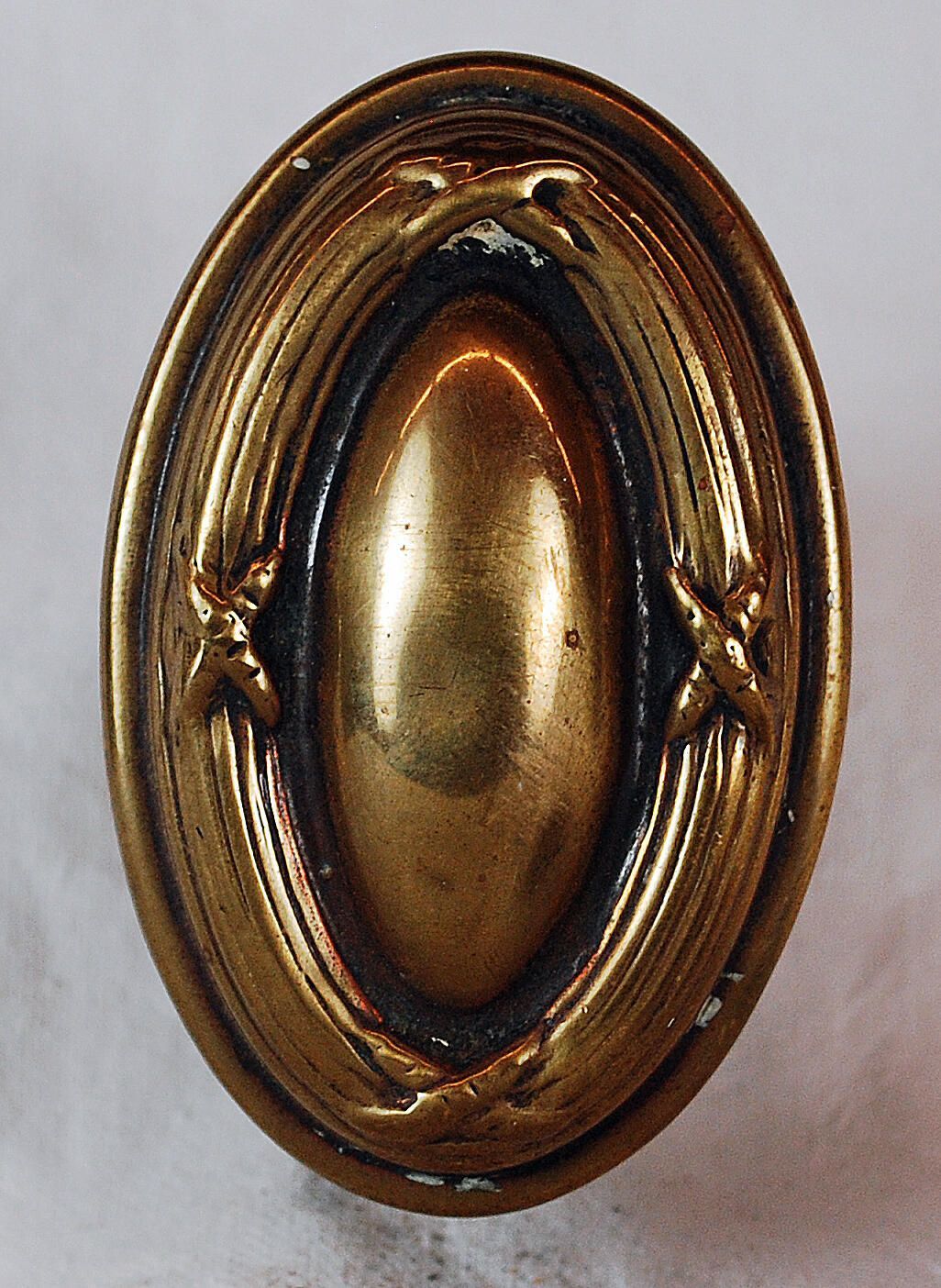 Design Name: Manufacture: Style: Material: Brass Manufacturing Method: Stamped Surface Finish: Unpolished VDA Classification: VDA Number: Shape: Domed, Oval Egg Patent Specifics: Lock Type (If Applicable): Inscription/Makers Mark: Inscription Text: Comments: .Probably French / Continental