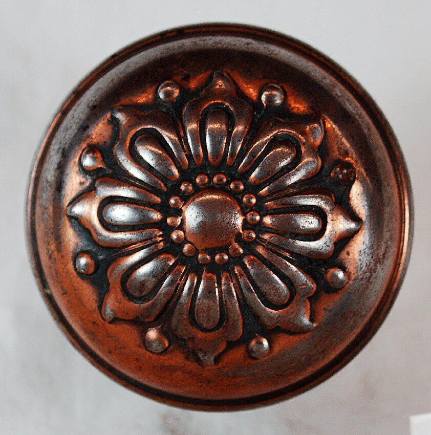 Design Name: RD Design Manufacture: Sargent & Co. Style: Material: Steel Manufacturing Method: Wrought / Stamped Surface Finish: Copper Plated VDA Classification: Eightfold Symmetry VDA Number: K - 311 Shape: Domed Patent Specifics: Lock Type (If Applicable): Inscription/Makers Mark: Inscription Text: Comments: Plating Worn.