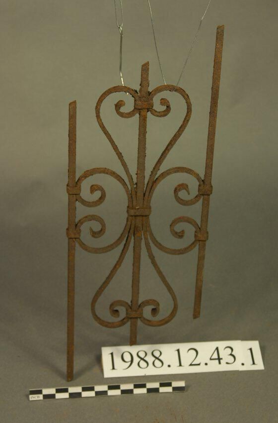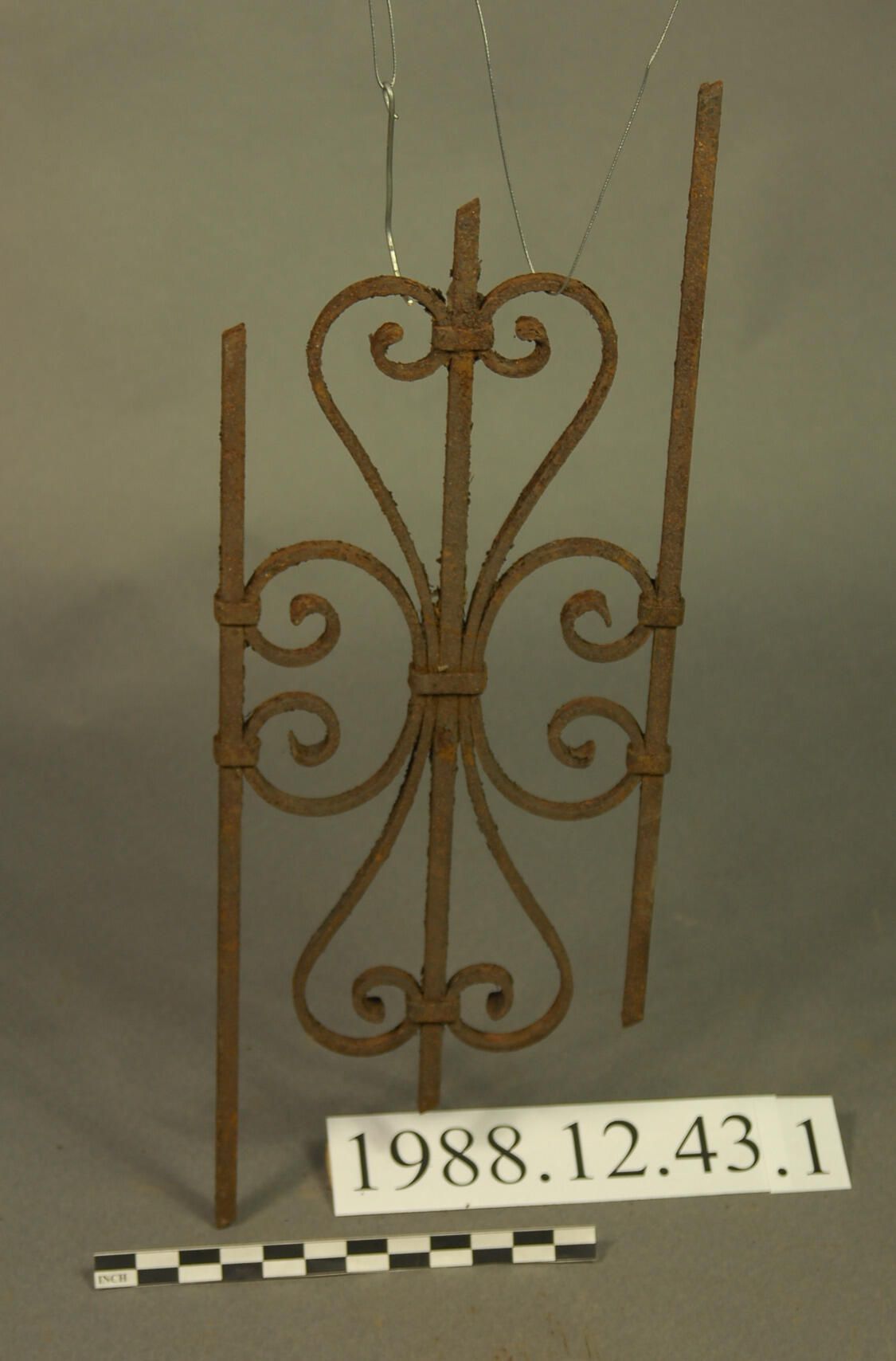 Iron, scrolled Ornament from stair railing. Matches 1988.12.43. Remnants of paint.