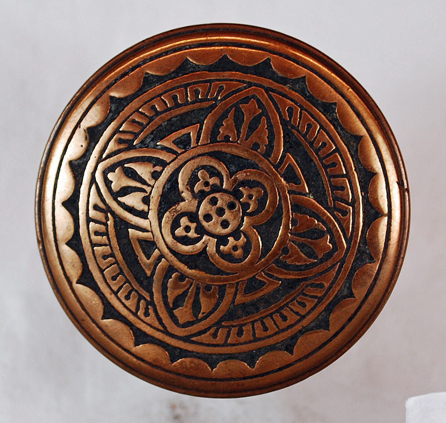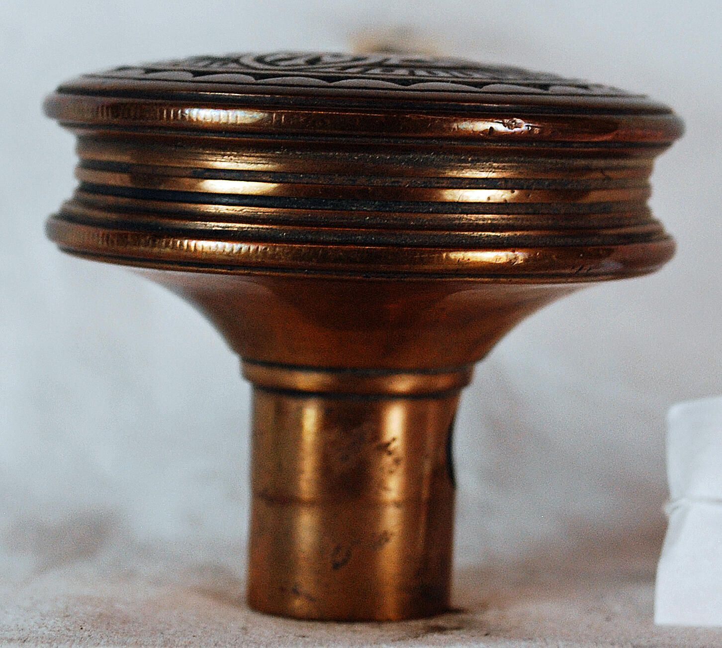 Design Name: Gothic Manufacture: P. & F. Corbin Style: Eastlake Material: Bronze Manufacturing Method: Cast Surface Finish: Unpolished VDA Classification: Fourfold Symmetry VDA Number: H - 247 Shape: Drum Patent Specifics: Lock Type (If Applicable): Inscription/Makers Mark: Inscription Text: Comments: Two Piece Cast.