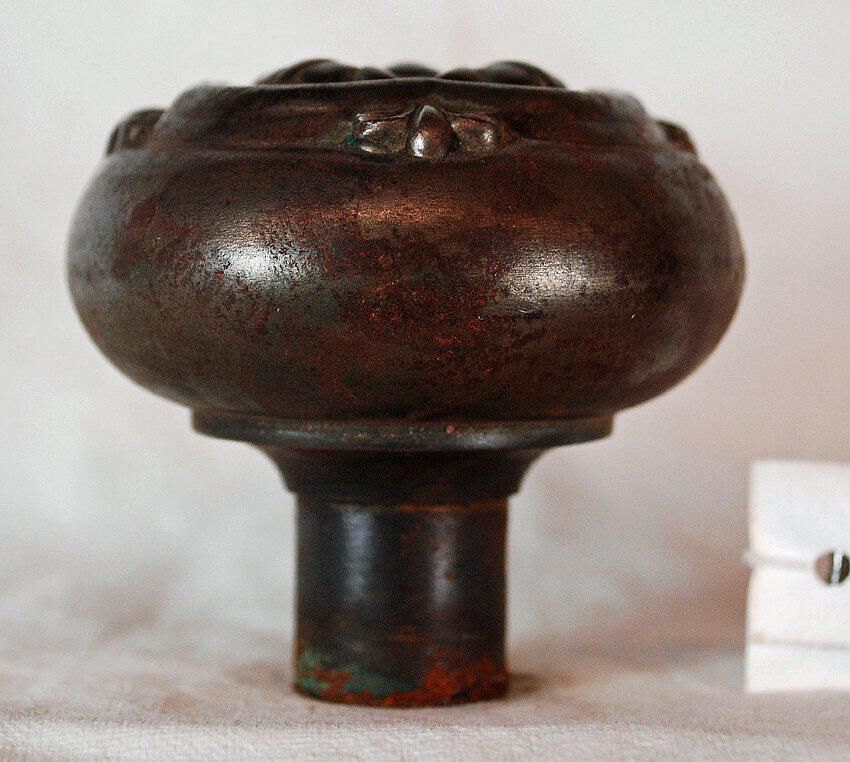 Design Name: Le Roy Manufacture: Russell & Erwin Mfg. Co. Style: Material: Steel Manufacturing Method: Wrought / Stamped Surface Finish: Aged / Unpolished VDA Classification: H VDA Number: H - 481 Shape: Domed Patent Specifics: Lock Type (If Applicable): Inscription/Makers Mark: Inscription Text: Comments: