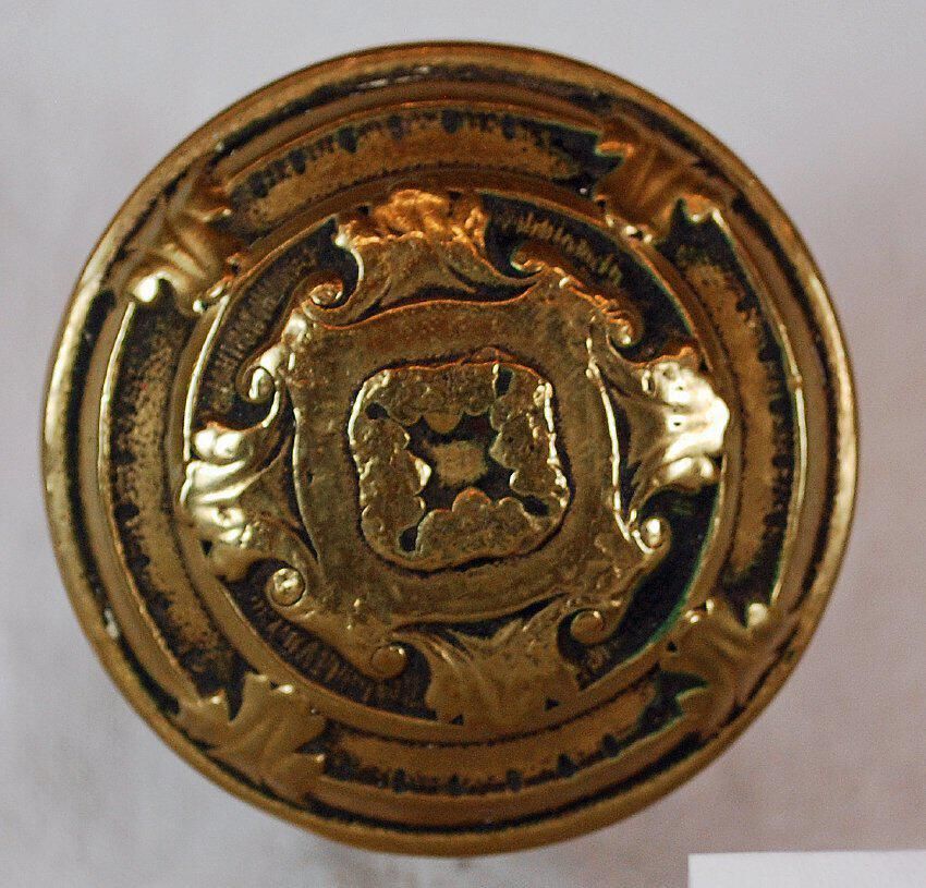 Design Name: Manufacture: Style: Material: Brass Manufacturing Method: Cast Surface Finish: Brass VDA Classification: Fourfold Symmetry VDA Number: H - 490 Shape: Domed Patent Specifics: Lock Type (If Applicable): Inscription/Makers Mark: Inscription Text: Comments: .