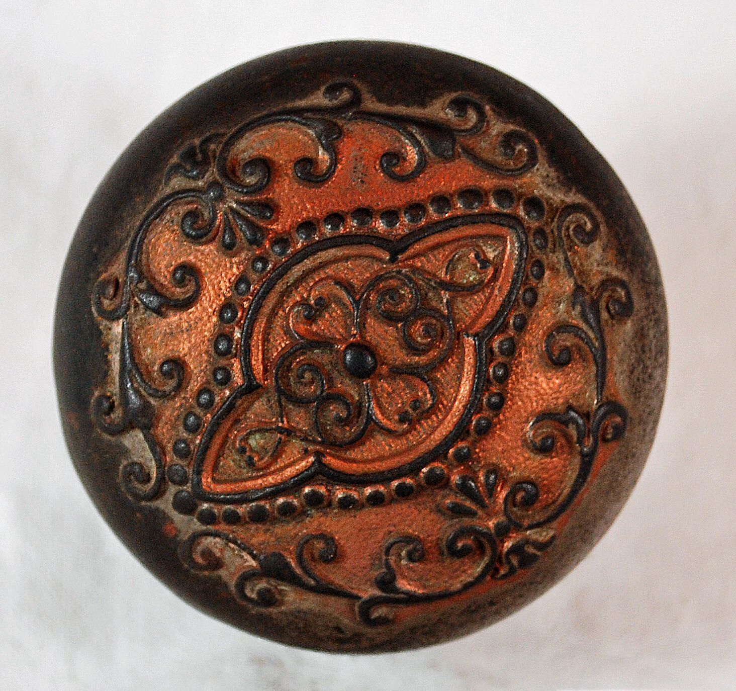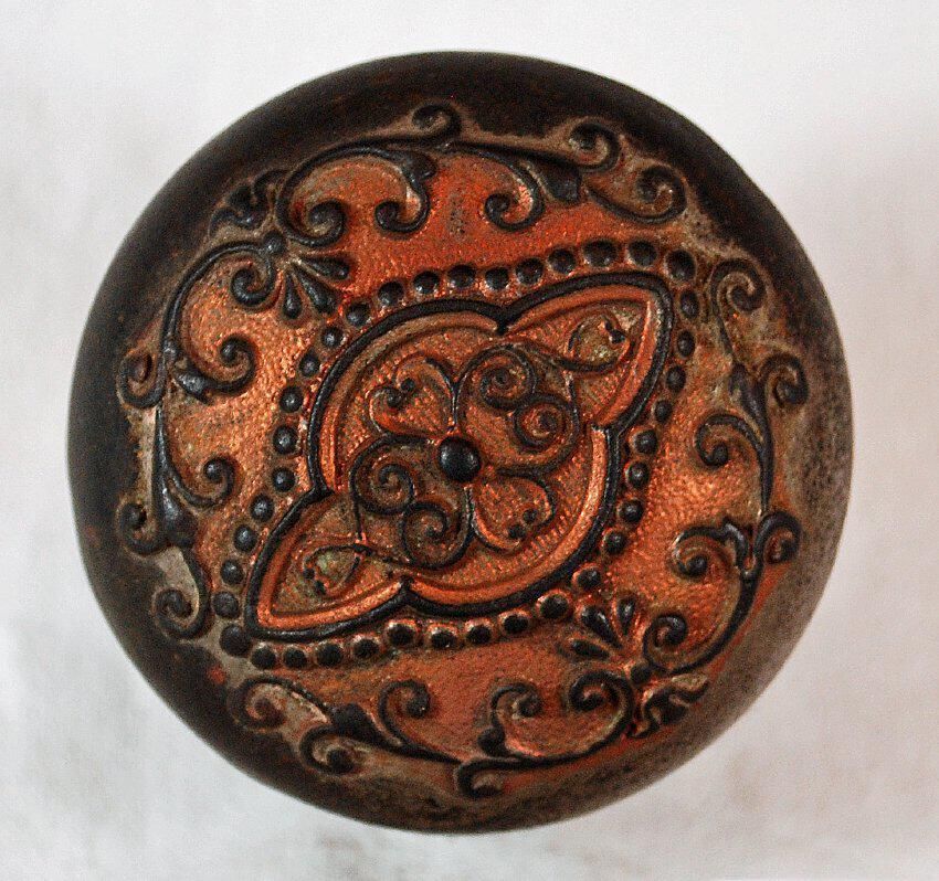 Design Name: Manufacture: Yale & Towne Mfg. Co. Style: Material: Iron Manufacturing Method: Cast Surface Finish: Plated / Copper / Nickel VDA Classification: Twofold Symmetry VDA Number: F - 205 Shape: Domed Patent Specifics: Lock Type (If Applicable): Inscription/Makers Mark: Inscription Text: Comments: One Piece Cast. Little Plating Remaining.