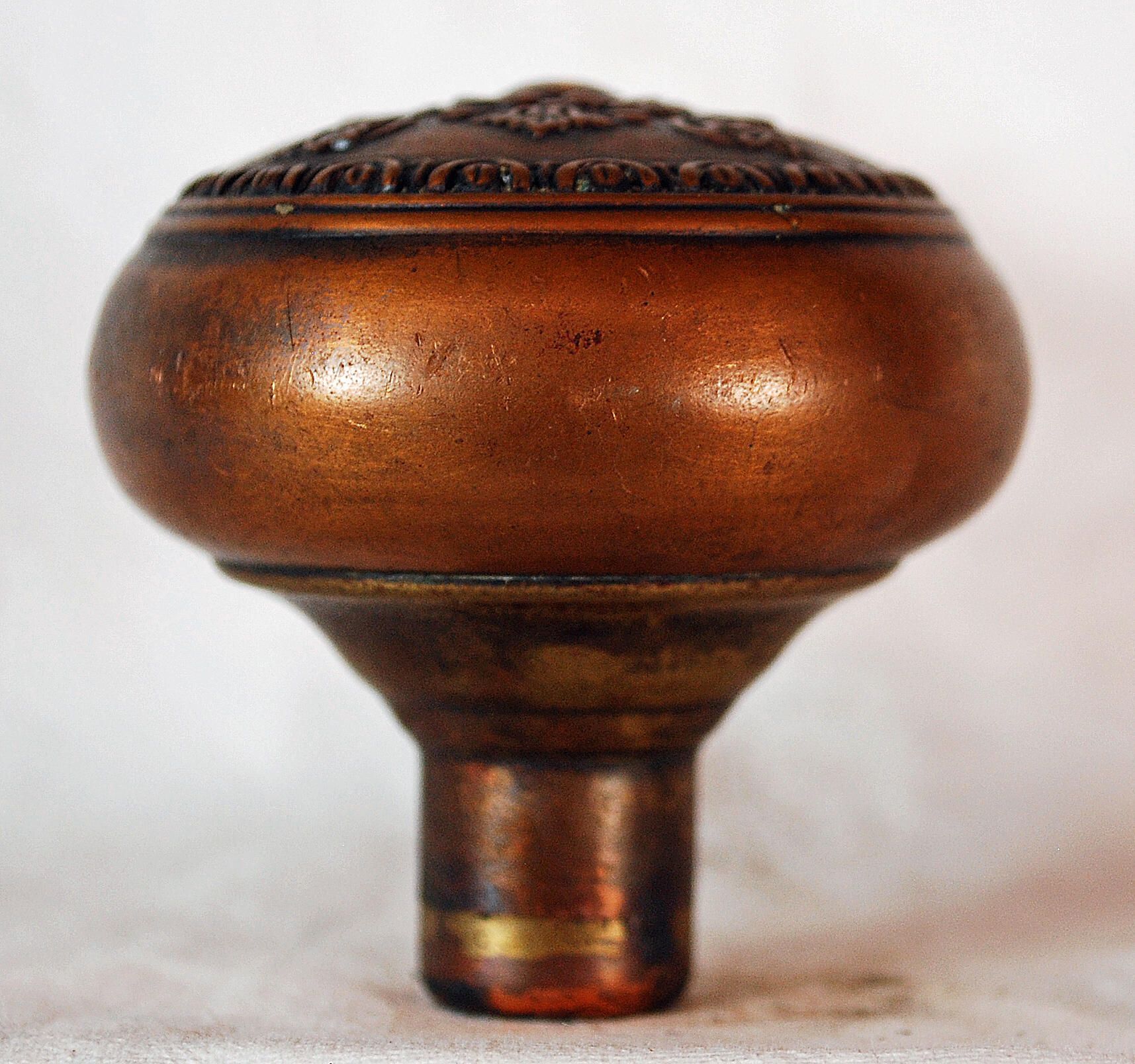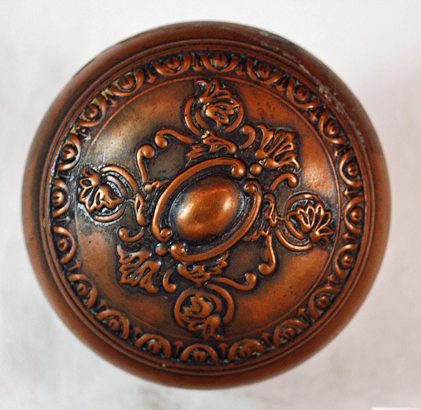 Design Name: Creston Manufacture: Reading Hdwr. Co. Style: Material: Bronze Manufacturing Method: Wrought / Stamped Surface Finish: Unpolished VDA Classification: Twofold Symmetry VDA Number: F - 227 Shape: Domed Patent Specifics: Lock Type (If Applicable): Inscription/Makers Mark: Inscription Text: Comments: