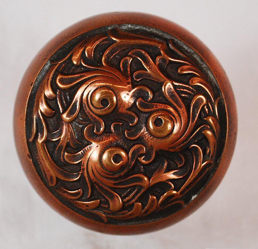 Design Name: Walsingham Manufacture: Russell & Erwin Mfg. Co. Style: Romanesque Material: Bronze Manufacturing Method: Cast Surface Finish: Unpolished VDA Classification: Threefold Symmetry VDA Number: G - 130 Shape: Domed Patent Specifics: Lock Type (If Applicable): Inscription/Makers Mark: Inscription Text: Comments: