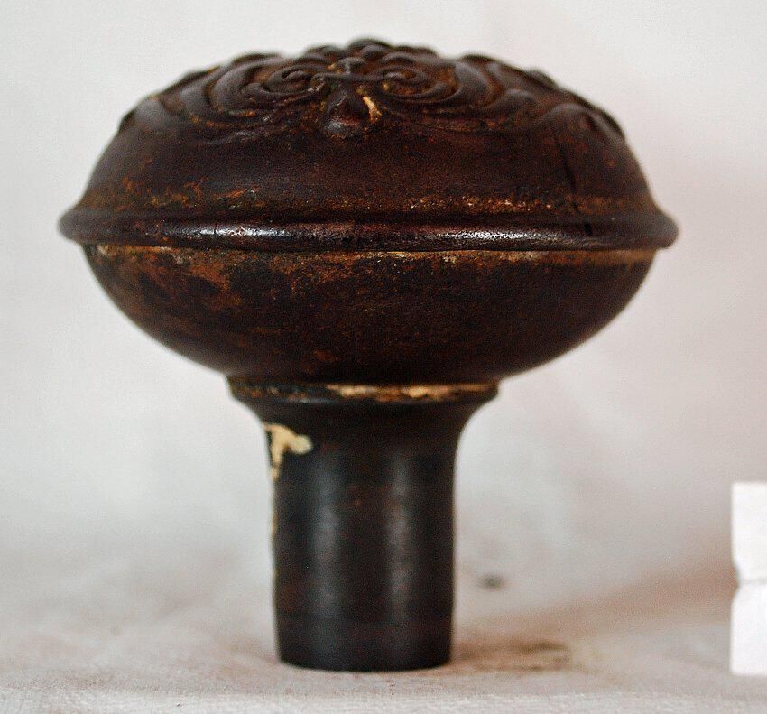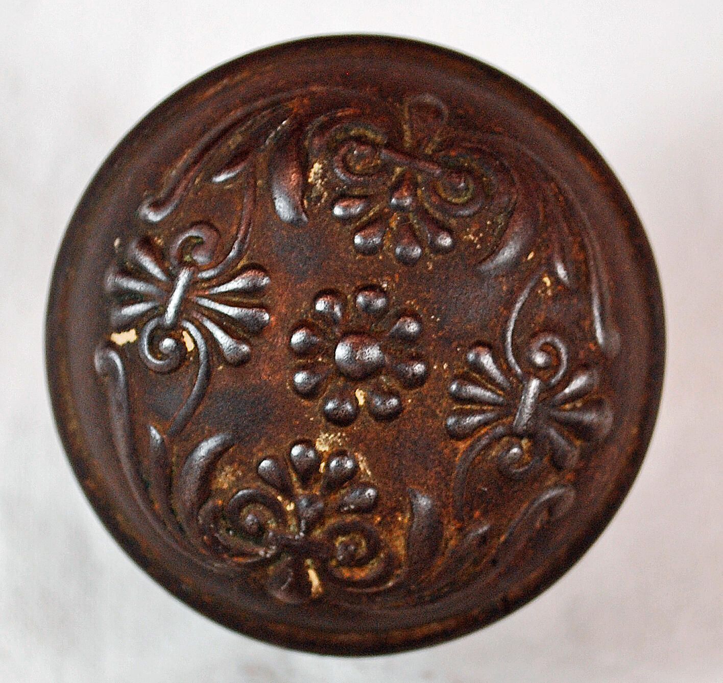 Design Name: Vinca Manufacture: Reading Hdwr. Co. Style: Vernacular Material: Steel Manufacturing Method: Wrought / Stamped Surface Finish: Unpolished VDA Classification: Twofold Symmetry VDA Number: E - 219 Shape: Domed Patent Specifics: Lock Type (If Applicable): Inscription/Makers Mark: Inscription Text: Comments: .