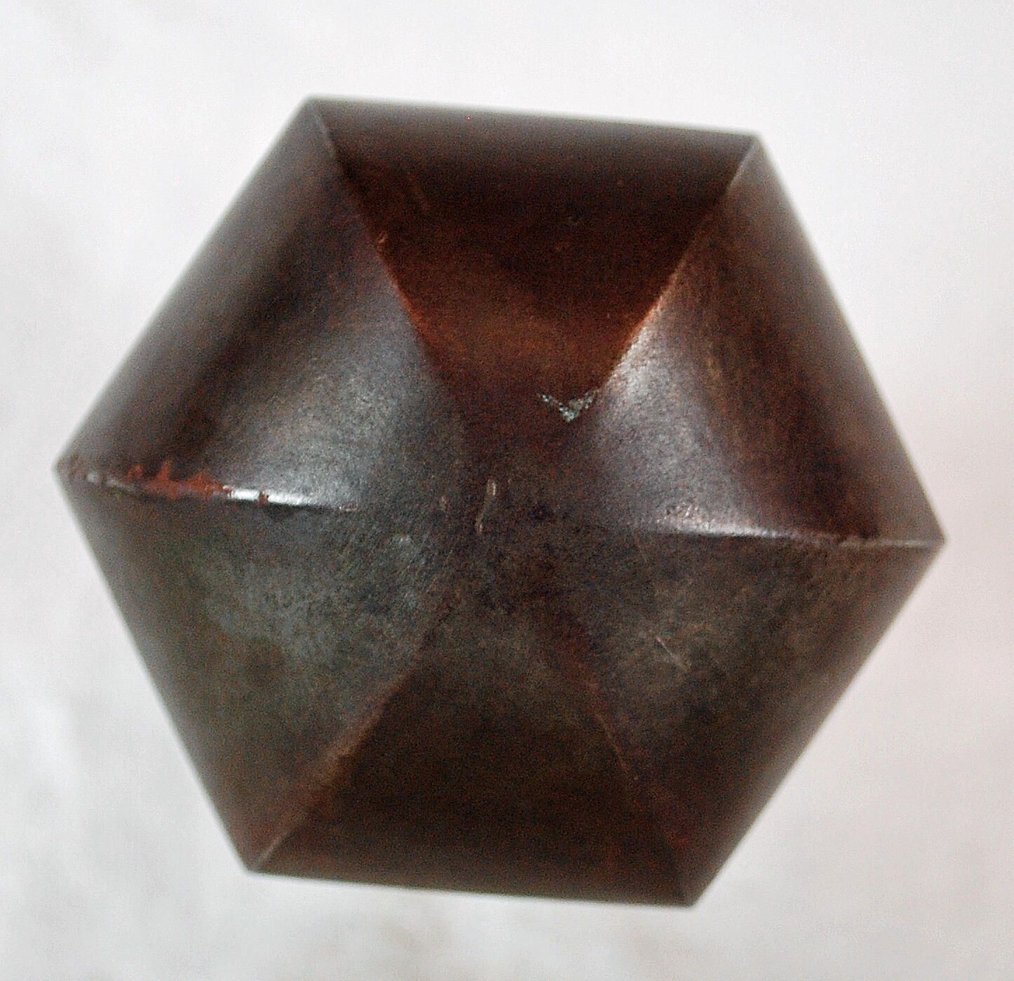 Design Name: Manufacture: . Style: Material: Iron Manufacturing Method: Cast Surface Finish: Aged / Unpolished VDA Classification: VDA Number: Shape: Hexagonal Patent Specifics: Lock Type (If Applicable): Inscription/Makers Mark: Inscription Text: Comments: