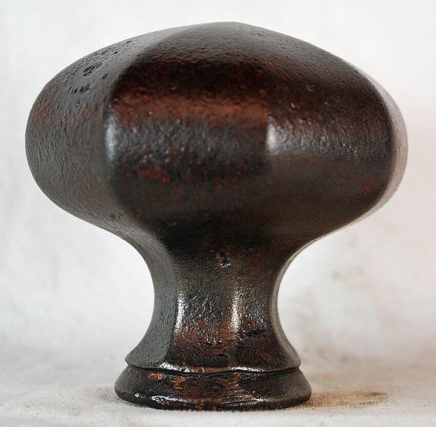 Design Name: Manufacture: Style: Material: Iron Manufacturing Method: Cast Surface Finish: Unpolished VDA Classification: VDA Number: Shape: Octagon Patent Specifics: Lock Type (If Applicable): Inscription/Makers Mark: Inscription Text: Comments: Probably English. May be a "Center Knob." No Original Surface Treatment Remaining. One Piece Cast.