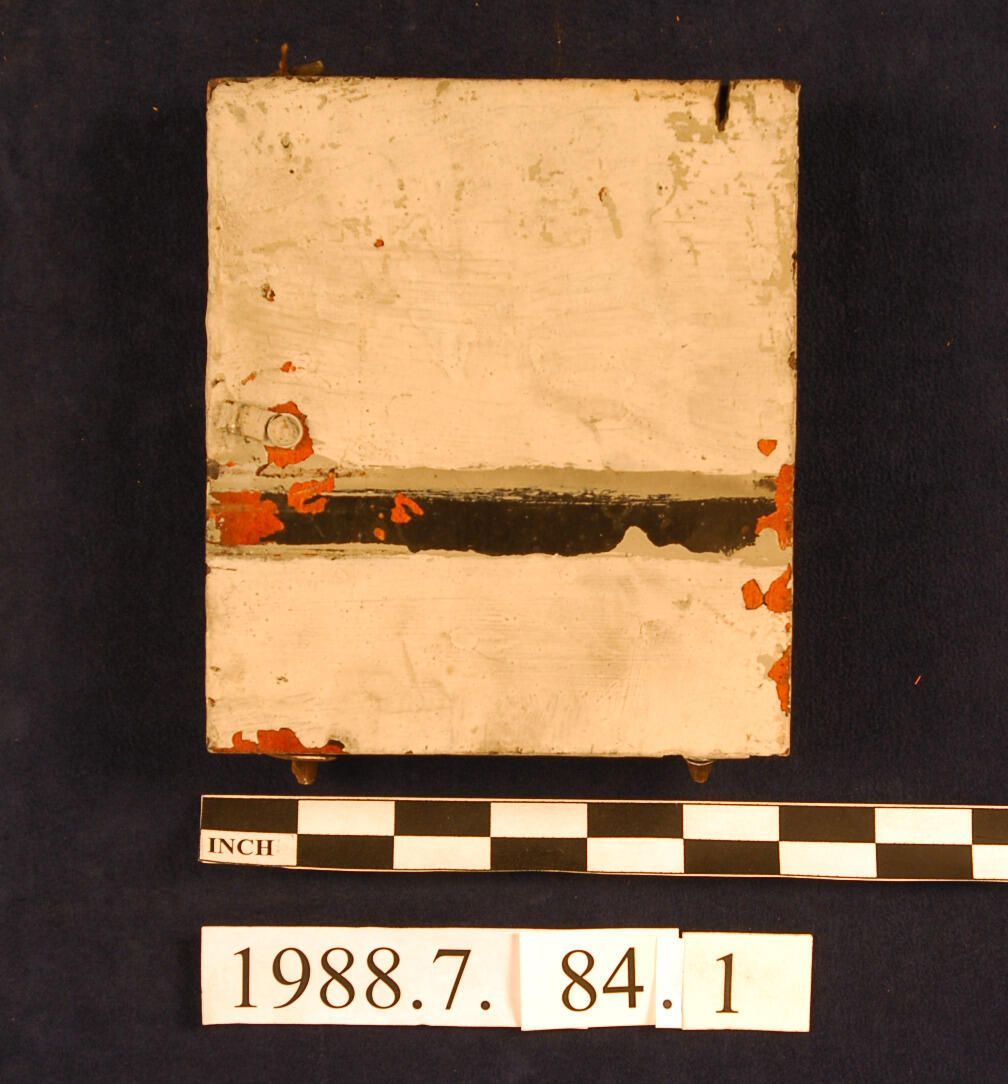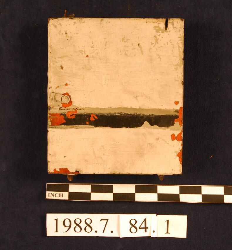 Single rectangular block. Rabbeted edge. Painted. Possible base block. Inscriptions or Markings: Manufacturer: Place of Manufacturer: Design motif: Style: Finish: Painted.