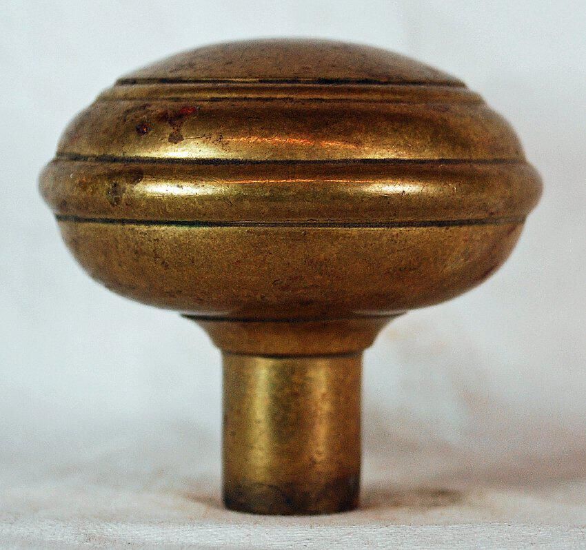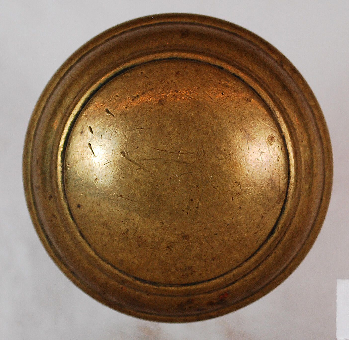 Design Name: Manufacture: Style: Material: Brass Manufacturing Method: Wrought Stamped and/or Cast Surface Finish: Aged Brass VDA Classification: VDA Number: Shape: Domed Patent Specifics: Lock Type (If Applicable): Inscription/Makers Mark: Inscription Text: : Comments: Has a Larger Hole. F 318 Spindle. Entry Knob?