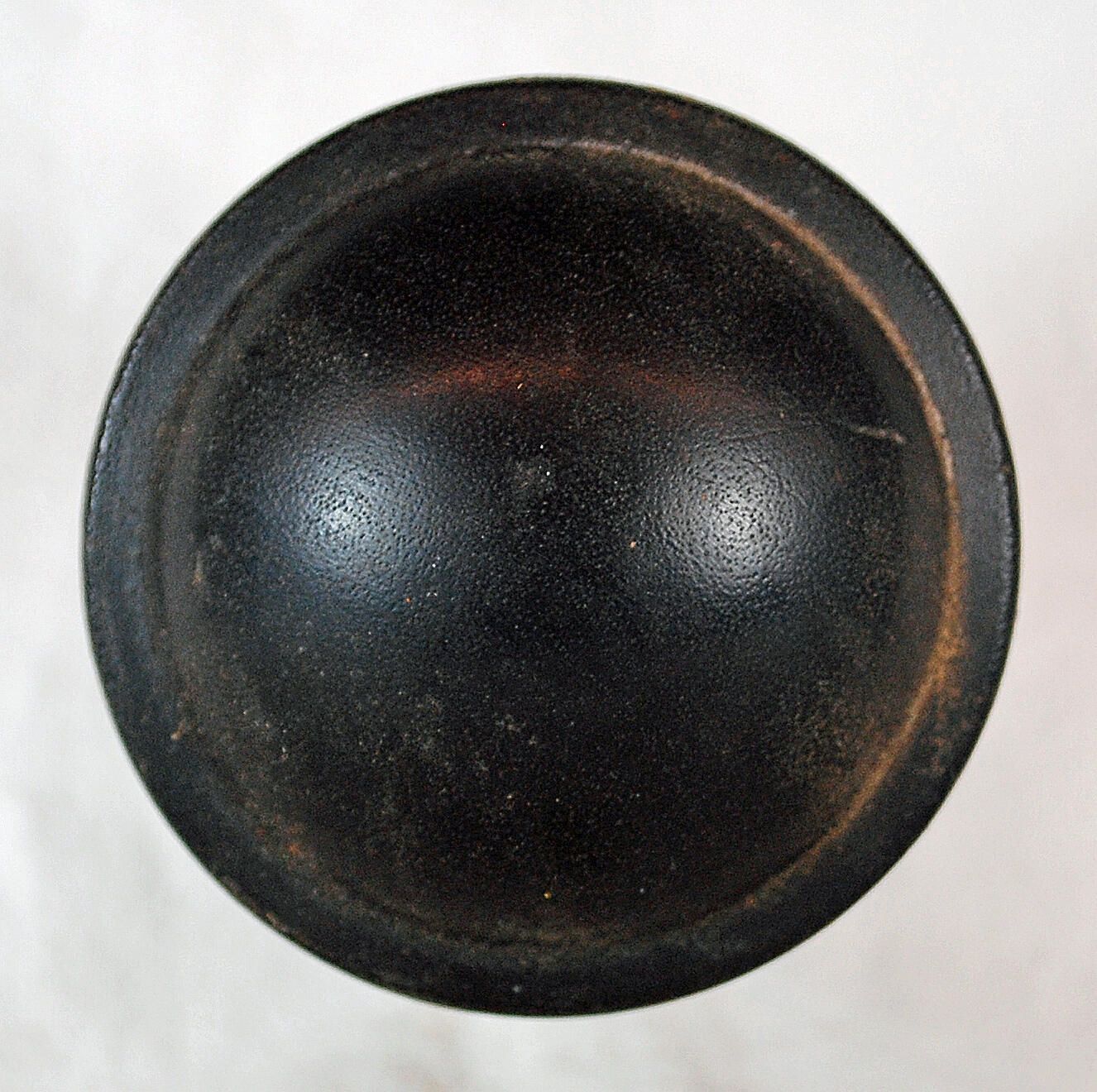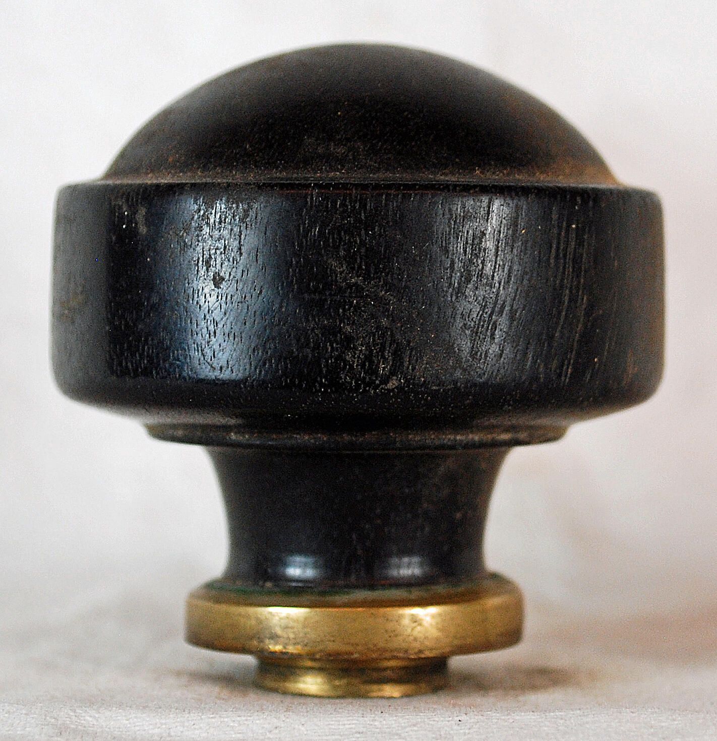 Design Name: Manufacture: Style: Material: Dark Wood Manufacturing Method: Turned Surface Finish: Unpolished VDA Classification: VDA Number: Shape: Domed Patent Specifics: Lock Type (If Applicable): Inscription/Makers Mark: Inscription Text: : Comments: .Possibly English. Brass Shank.