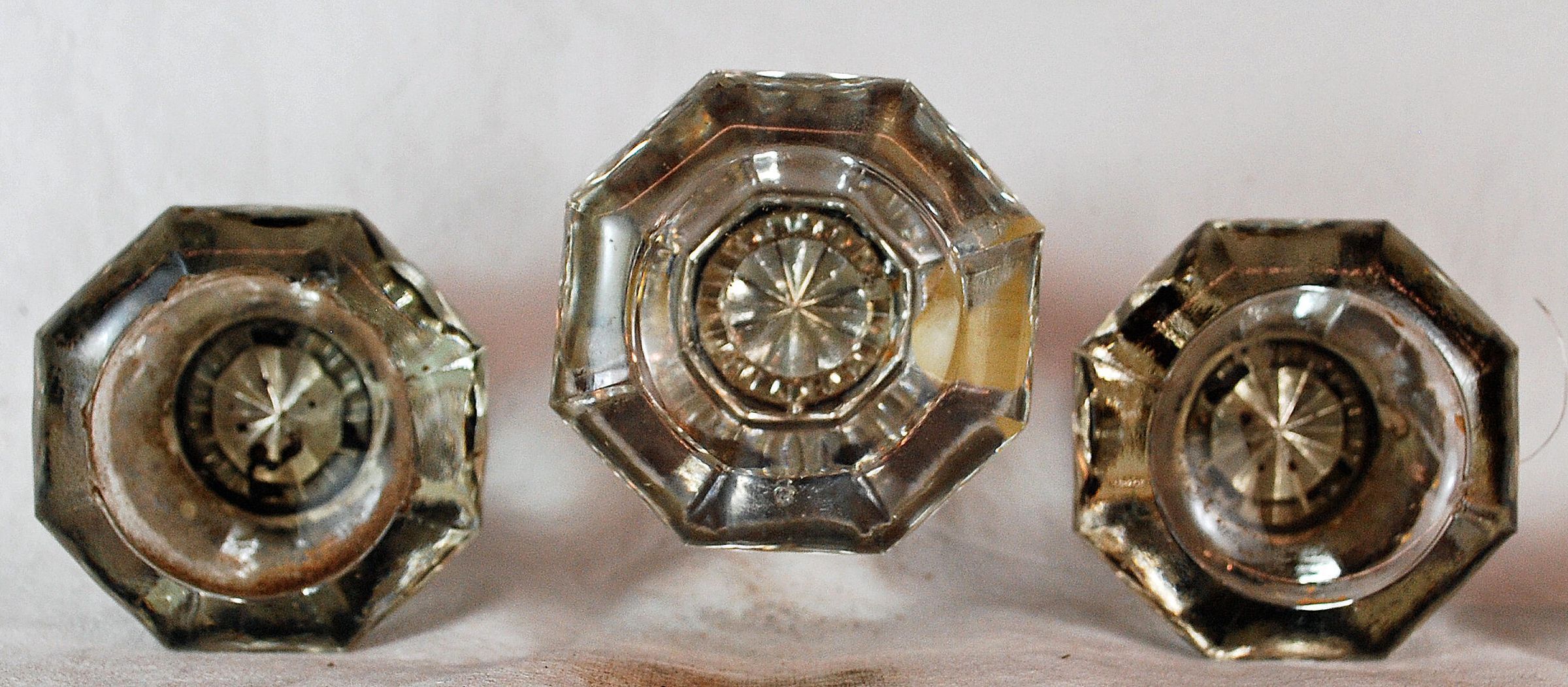 Design Name: Manufacture: Style: Material: Glass Manufacturing Method: Pressed Surface Finish: VDA Classification: Z VDA Number: Shape: Octagonal Patent Specifics: Lock Type (If Applicable): Inscription/Makers Mark: Inscription Text: : Comments: Sunken Center. Lot of 3.