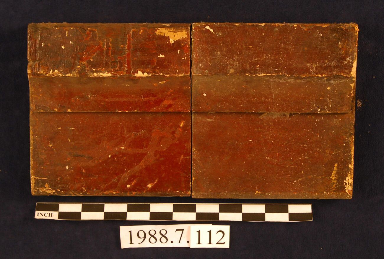 One lot of two rectangular corner blocks with applied cove molding. Cedar. Varnished. Inscriptions or Markings: Manufacturer: Place of Manufacturer: Design motif: Style: Finish: Varnished.