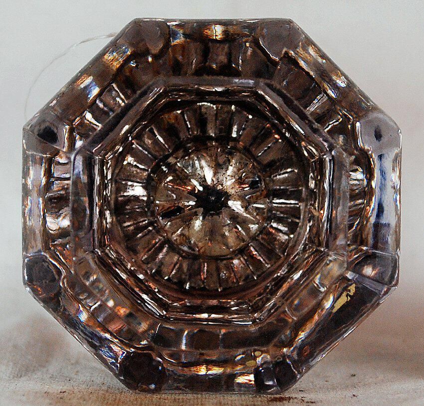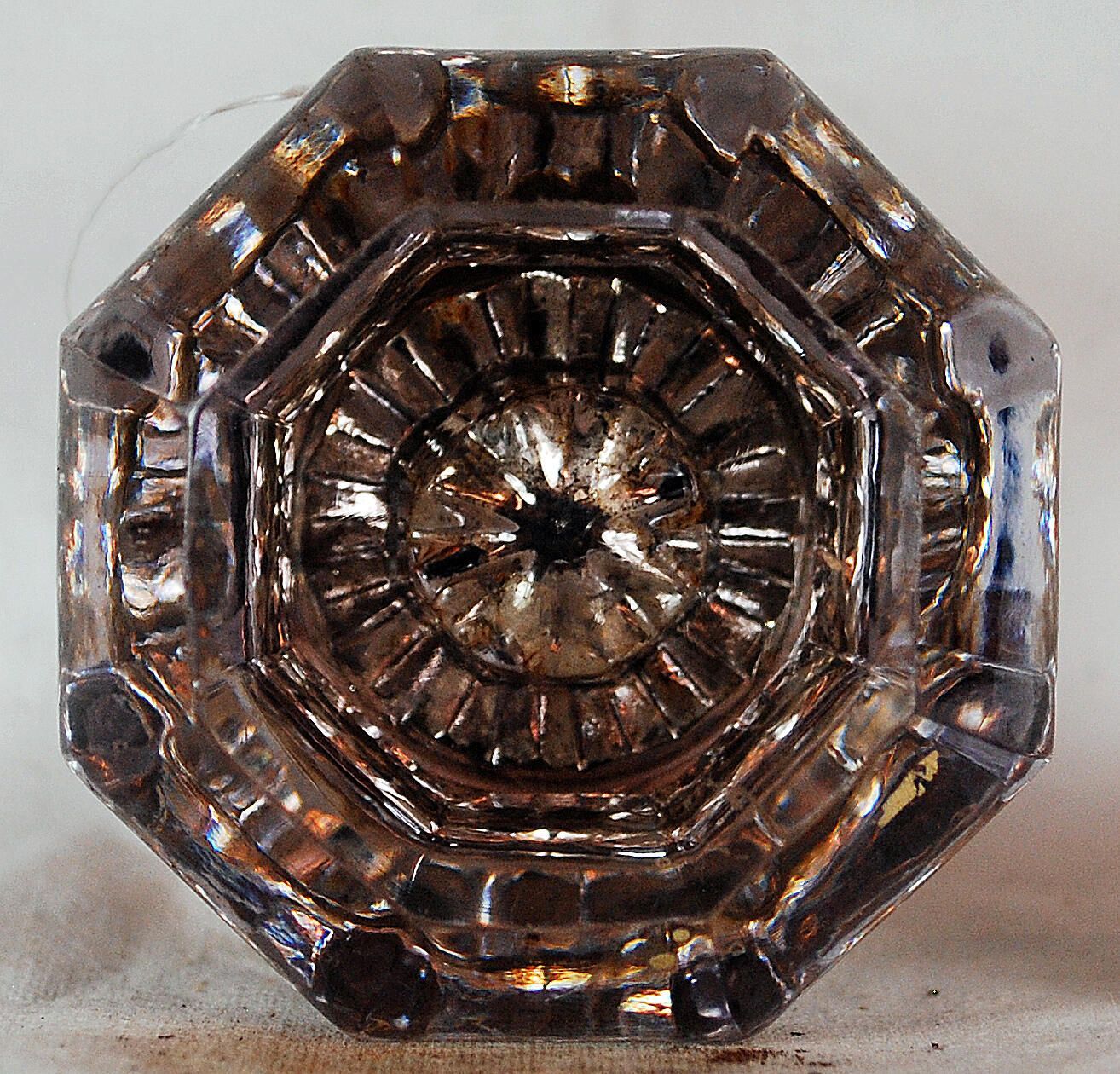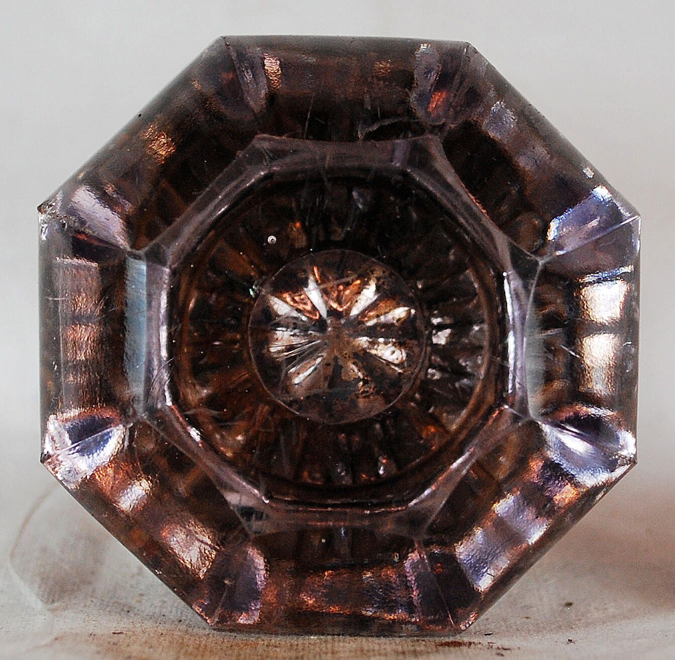 Design Name: Manufacture: Style: Material: Glass Manufacturing Method: Two Polished. One Domed. Surface Finish: VDA Classification: Z VDA Number: Shape: Octagonal Patent Specifics: Lock Type (If Applicable): Inscription/Makers Mark: Inscription Text: : Comments: Sun Knobs. Amethist Color. Lot of Three.