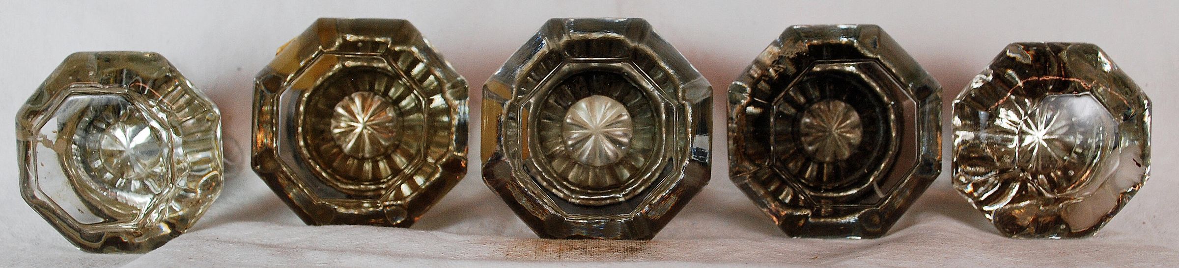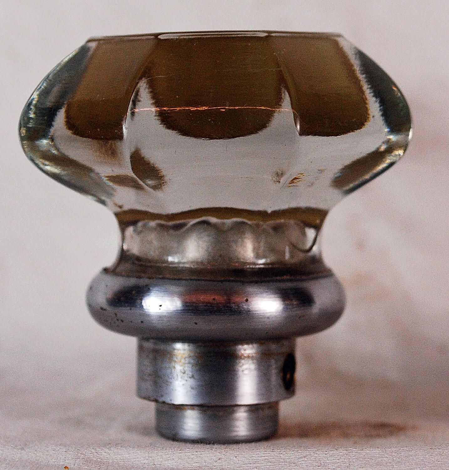 Design Name: Manufacture: Style: Material: Glass Manufacturing Method: Pressed Surface Finish: Polished Face VDA Classification: Z VDA Number: Shape: Octagonal Patent Specifics: Lock Type (If Applicable): Inscription/Makers Mark: Inscription Text: : Comments: (Five). Raised Glass Face.