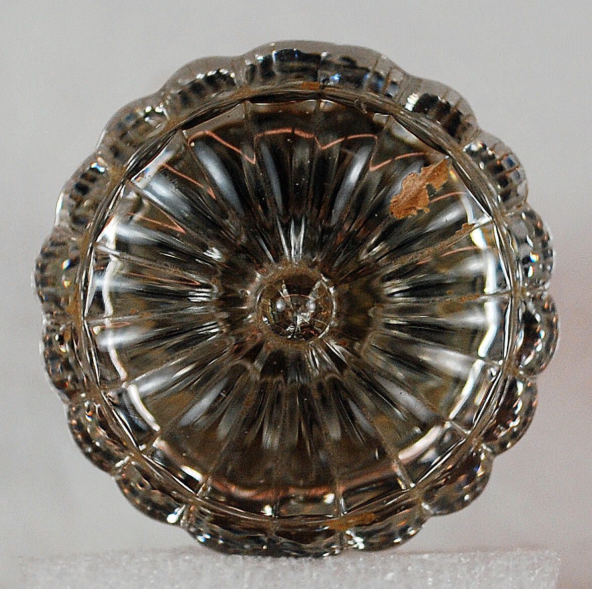 Design Name: Manufacture: Style: Material: Clear Glass Manufacturing Method: Pressed Surface Finish: VDA Classification: Glass VDA Number: Z Shape: Gadrooned Patent Specifics: Lock Type (If Applicable): Inscription/Makers Mark: Inscription Text: : Comments: