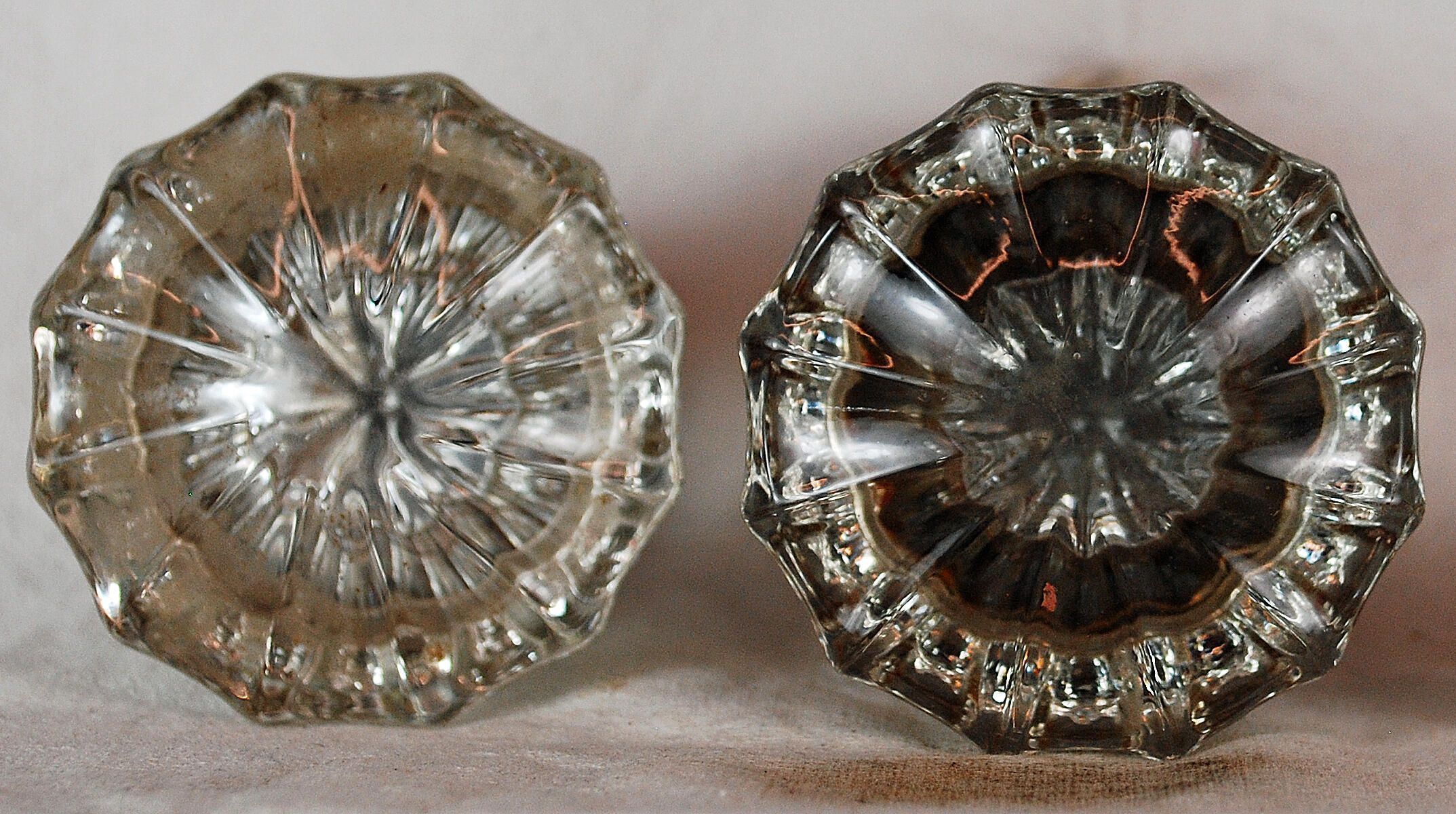 Design Name: Manufacture: Style: Material: Glass Manufacturing Method: Pressed Surface Finish: Pressed Face VDA Classification: Z Glass VDA Number: Shape: Fluted Patent Specifics: Lock Type (If Applicable): Inscription/Makers Mark: Inscription Text: : Comments: Lot of Two. Polished Face.