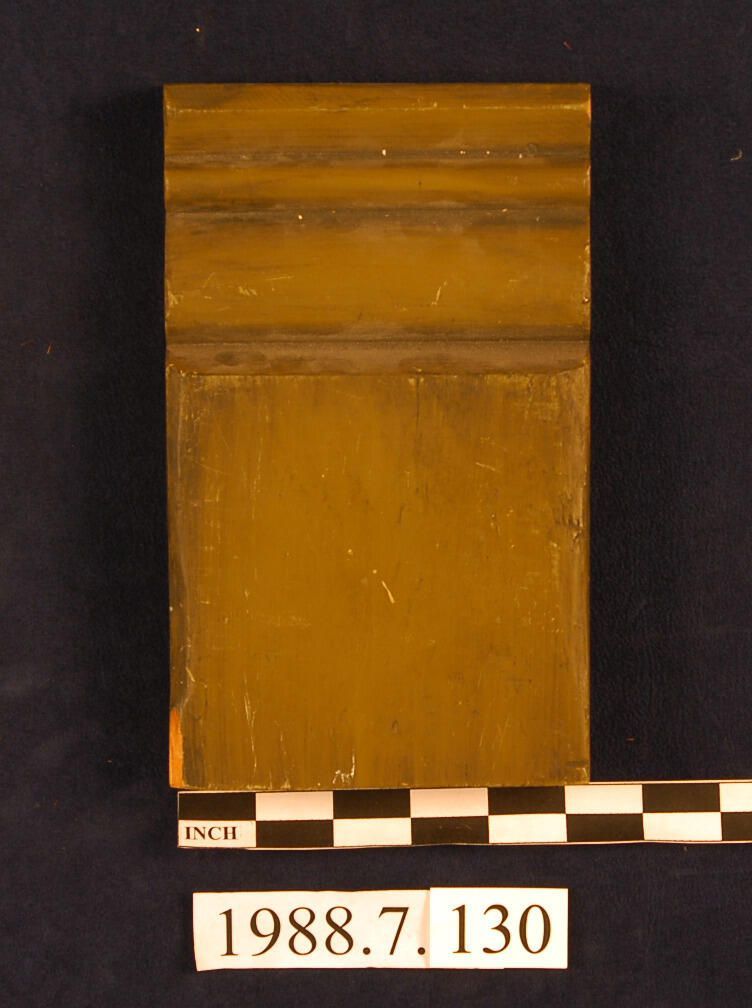 Rectangular corner block. Compound molding profile near top. Plain base. Unidentified wood. Painted. Inscriptions or Markings: Manufacturer: Place of Manufacturer: Design motif: Style: Finish: Painted.