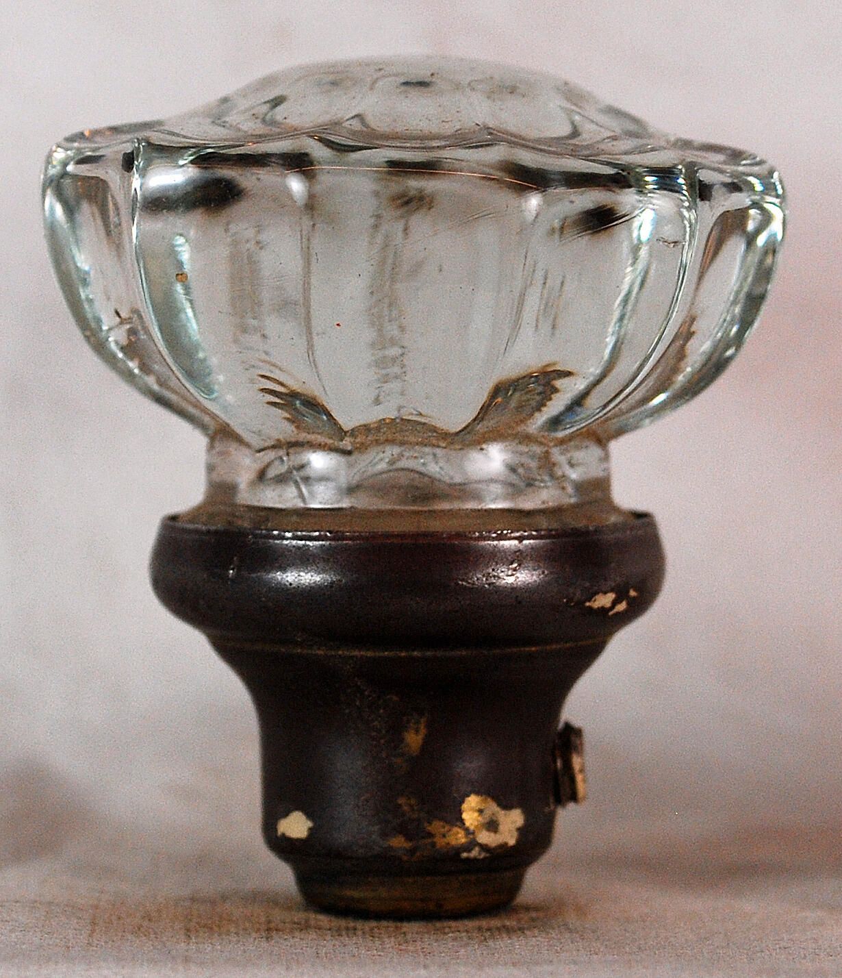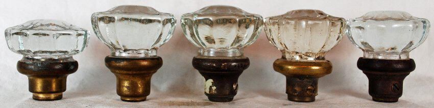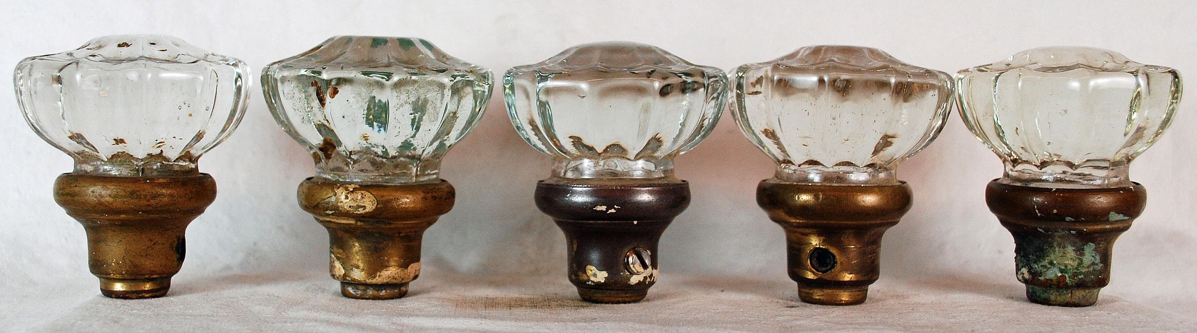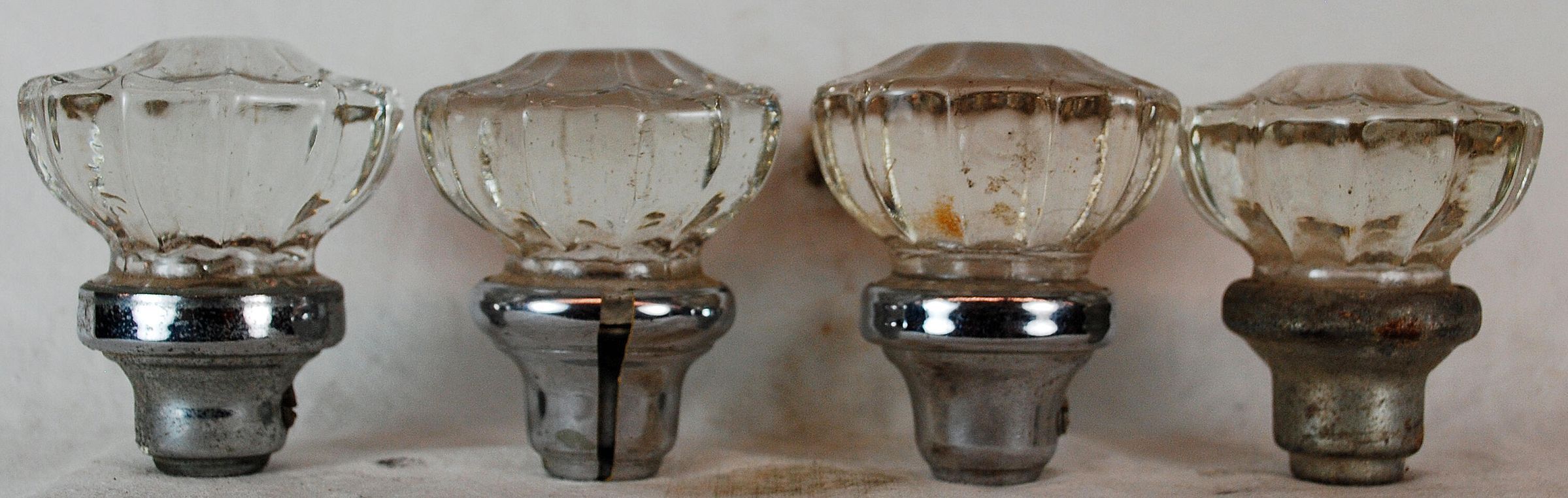 Design Name: Manufacture: Style: Material: Clear Glass Manufacturing Method: Pressed Surface Finish: VDA Classification: Glass VDA Number: Z Shape: Fluted Patent Specifics: Lock Type (If Applicable): Inscription/Makers Mark: Inscription Text: : Comments: Mix of Brass and Chrome Shanks.