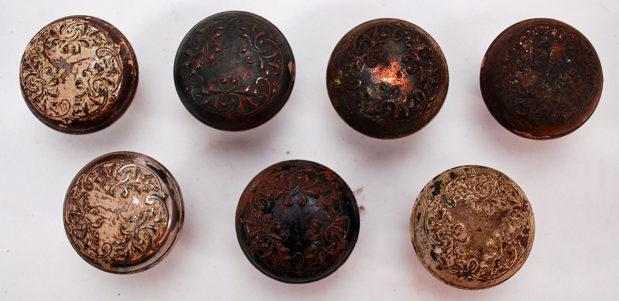 Comments: One is Japanned / Painted. Remaining six are plated. Three later painted. Minor rust on all.