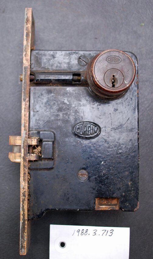 Comments: Bronze Face Plate. Two Corbin cylinder locks. Cast Iron Lock Case.