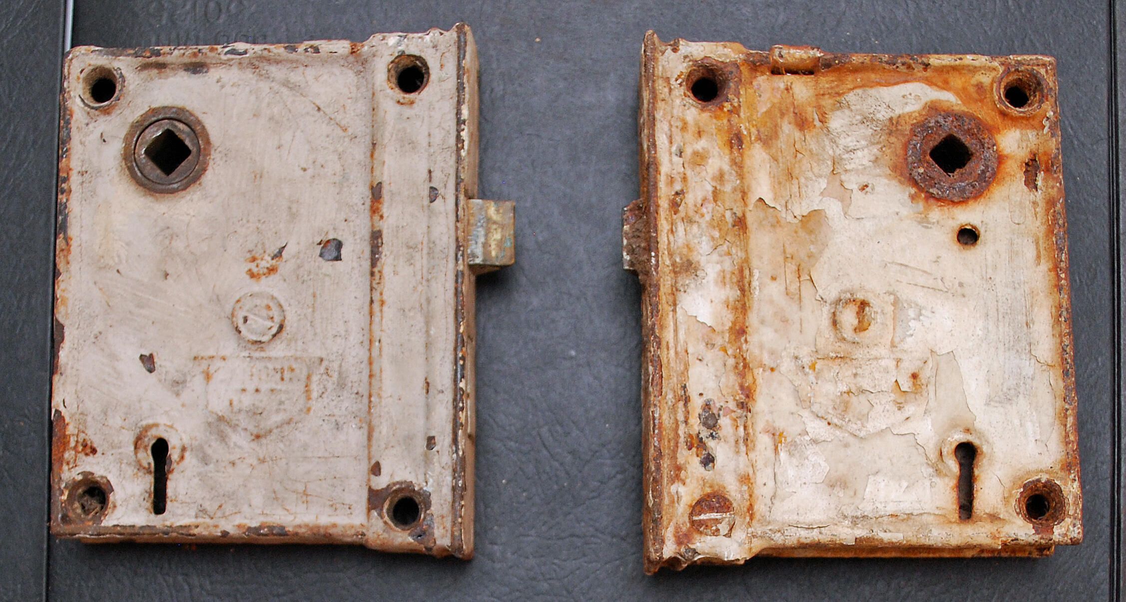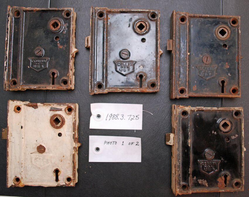 Comments: One with original Japanned finish. Six later painted cream colored / pink.