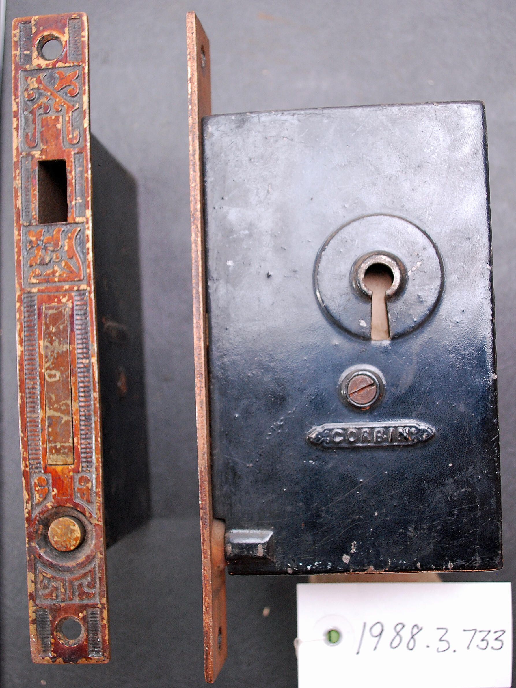 Comments: With strike plate / door pull, key holes, has one key.Lexicon