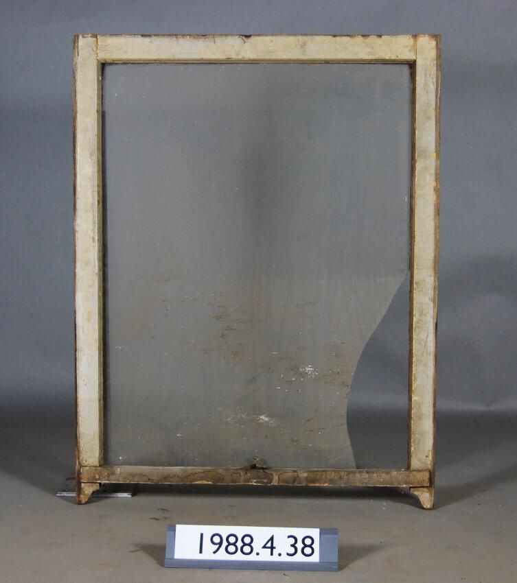 Rectangular. Mortice and tenon and coped joints.broken,incomplete glass pane. Has brass latch hardware. Ogee lugs. Type: Double hung top sash. Inscriptions or Markings: Manufacturer: Place of Manufacturer: Design motif: Style: Finish: Painted.