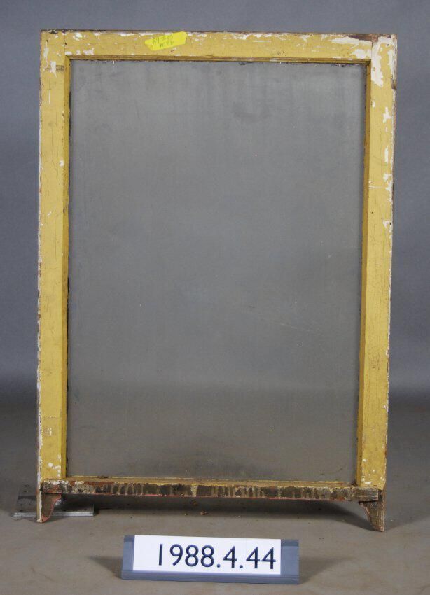 Rectangular. Mortice and tenon and coped joints. Complete glass pane. Latch hardware missing. Has ogee lugs. Type: Double hung top sash. Inscriptions or Markings: Manufacturer: Place of Manufacturer: Design motif: Style: Finish: Painted.