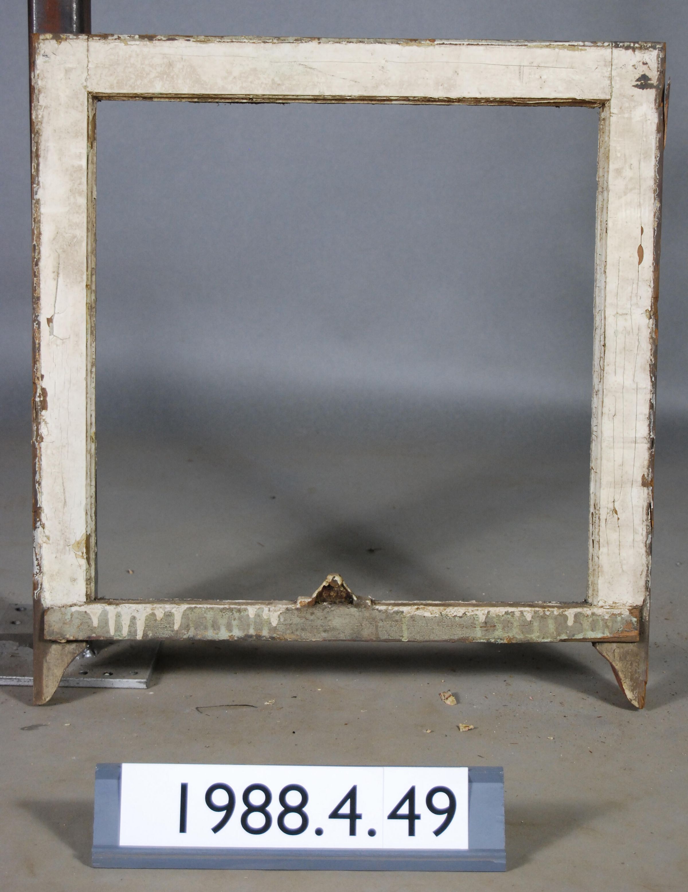 Rectangular. Mortice and tenon and coped joints. Glass pane missing. Has iron latch hardware. Ogee lugs. Type: Double hung top sash. Inscriptions or Markings: Manufacturer: Place of Manufacturer: Design motif: Style: Finish: Painted.