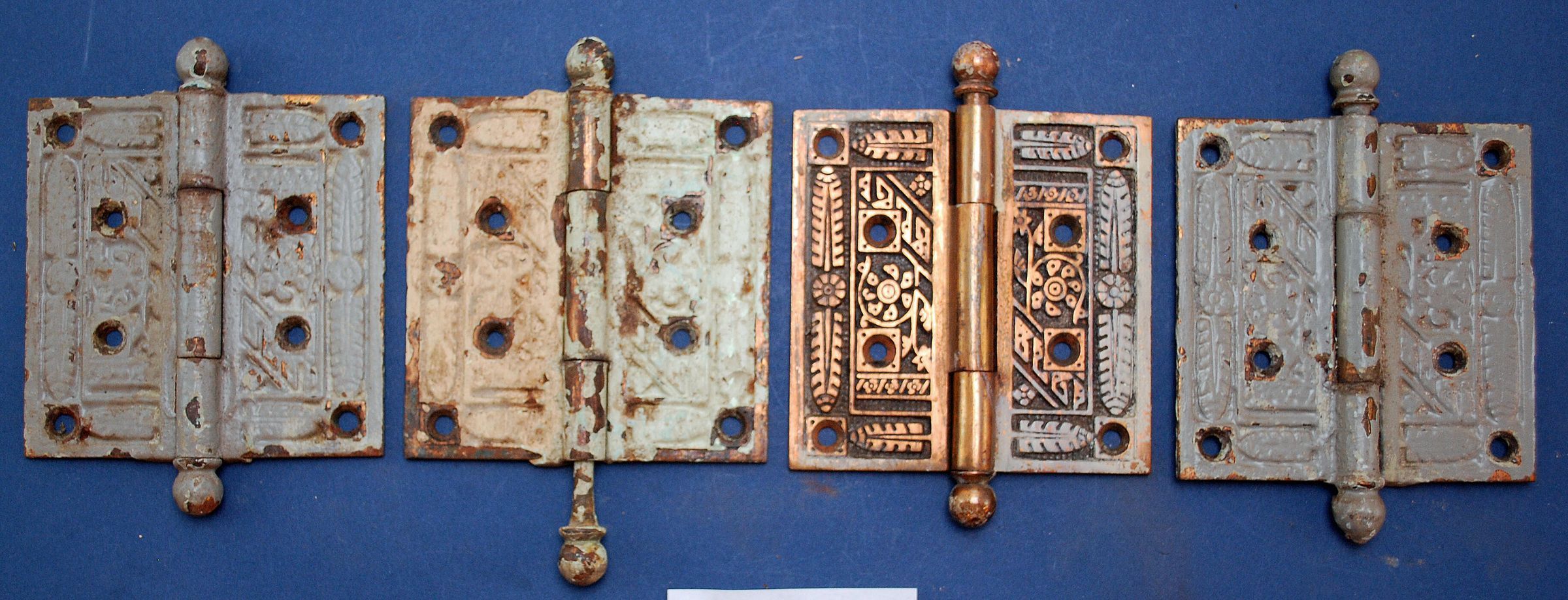 Design Name: Diagonal Manufacturer: P. & F. Corbin Style: Aesthetic Material: Iron Manufacturing Method: Cast Surface Finish: Plated Bronze VDA Classification: VDA Number: Shape: Patent Specifics: Lock Type (If Applicable): Inscription/Makers Mark: Inscription Text: Comments: Loose Joint Hinges. See 793 for More.