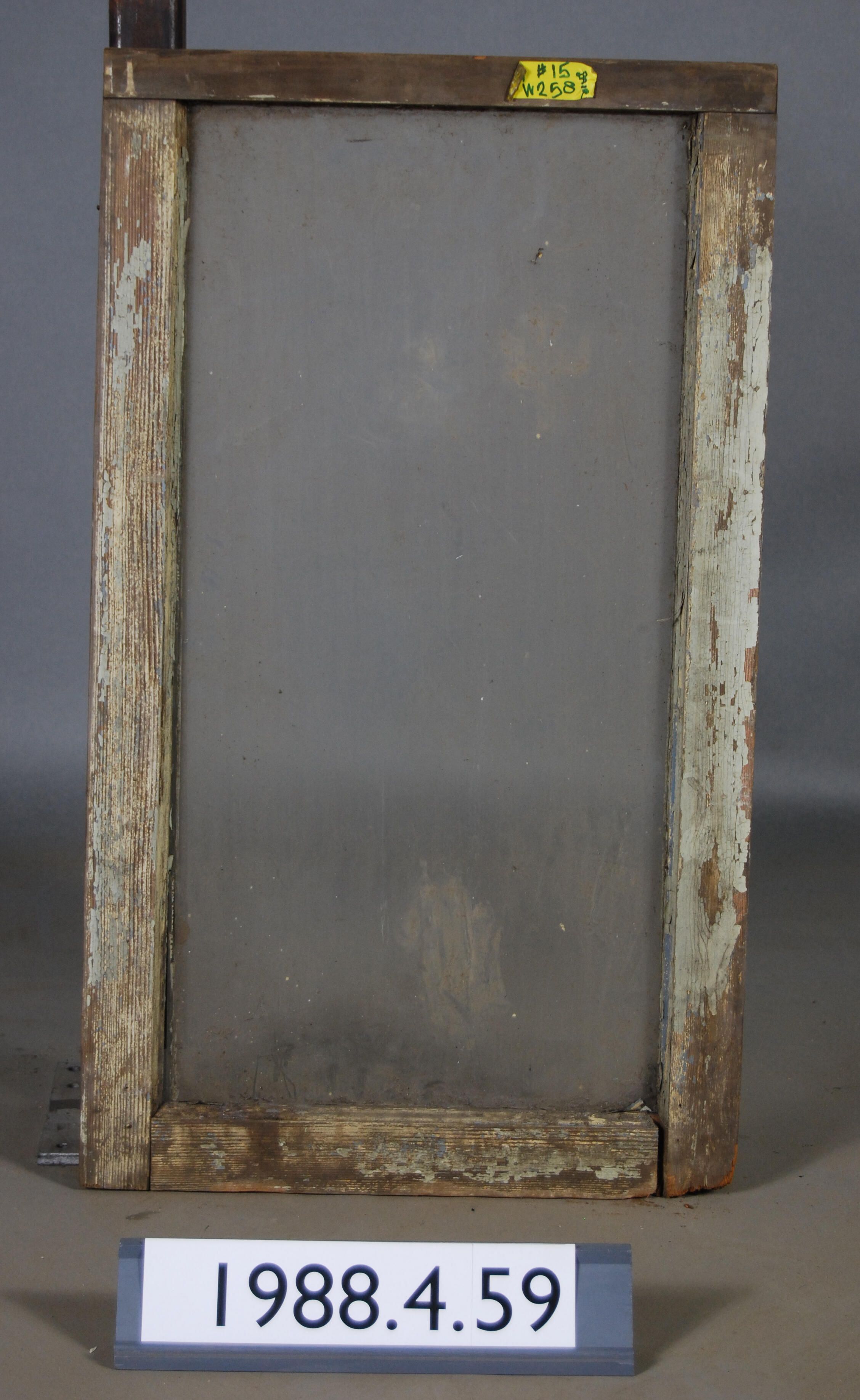Rectangular. Mortice and tenon and coped joints. Complete glass pane. Hardware missing. Type: Double hung top sash. Inscriptions or Markings: Manufacturer: Place of Manufacturer: Design motif: Style: Finish: Painted.