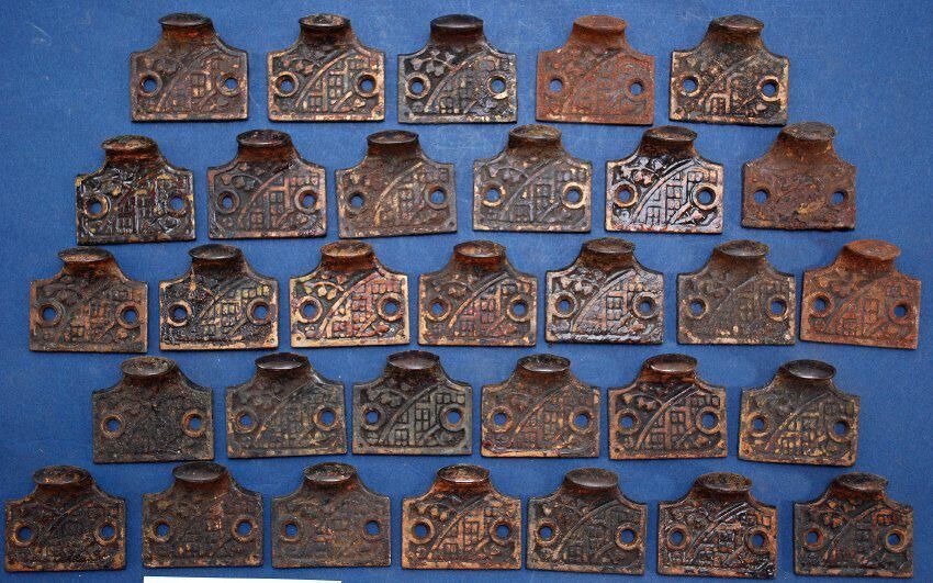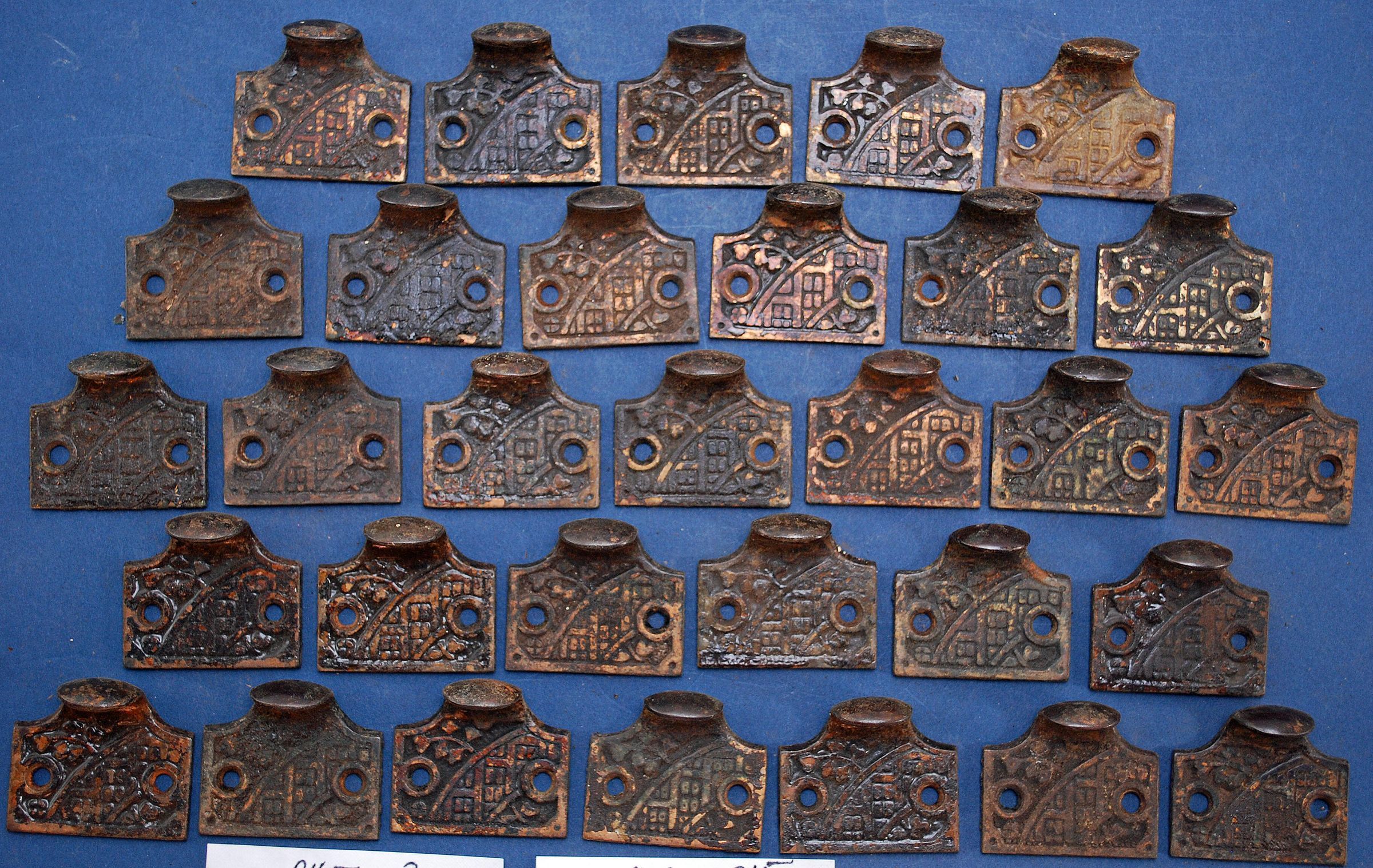 Design Name: Ceylon? Manufacturer: P. & F. Corbin Style: Aesthetic Material: Iron Manufacturing Method: Cast Surface Finish: Plated / Cuppreous VDA Classification: VDA Number: Shape: Patent Specifics: Lock Type (If Applicable): Inscription/Makers Mark: Inscription Text: Comments: Possible Early Ceylon Variation. NOTE: One is different.