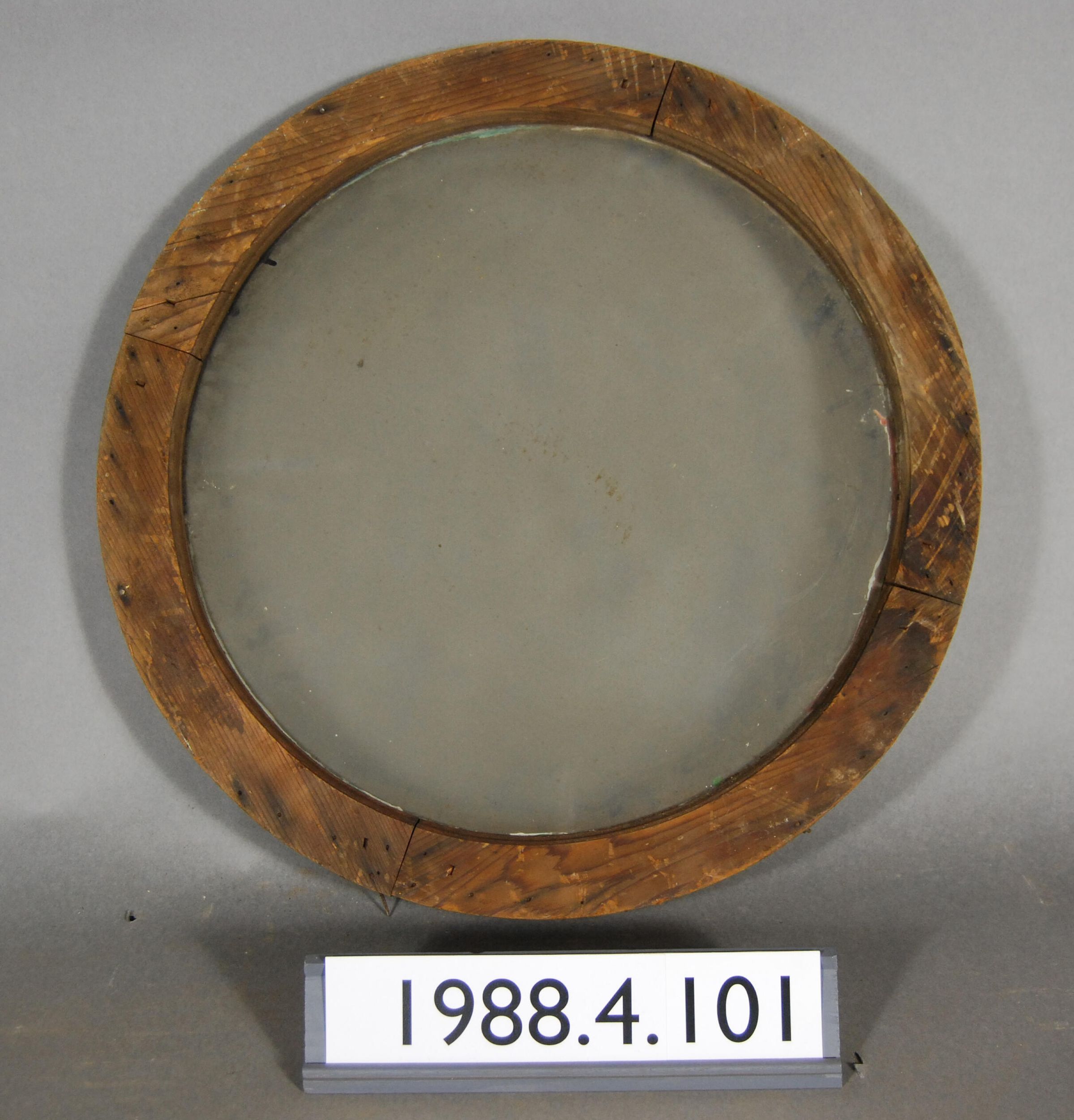 Circular window sash with complete circular glass pane. Type: Fixed sash. Inscriptions or Markings: Manufacturer: Place of Manufacturer: Design motif: Style: Finish: Painted.