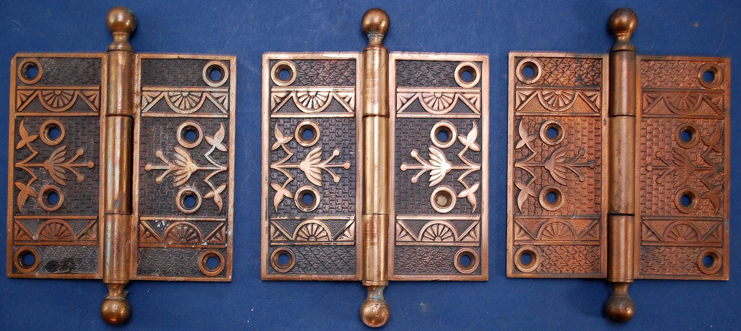 Design Name: Manufacturer: F. C. Linde & Co. Style: Aesthetic Material: Bronze Manufacturing Method: Cast Surface Finish: Aged / Unpolished VDA Classification: VDA Number: Shape: Patent Specifics: Lock Type (If Applicable): Inscription/Makers Mark: Inscription Text: "400" Comments: One hinge added to item count (located in exhibit 2015)
