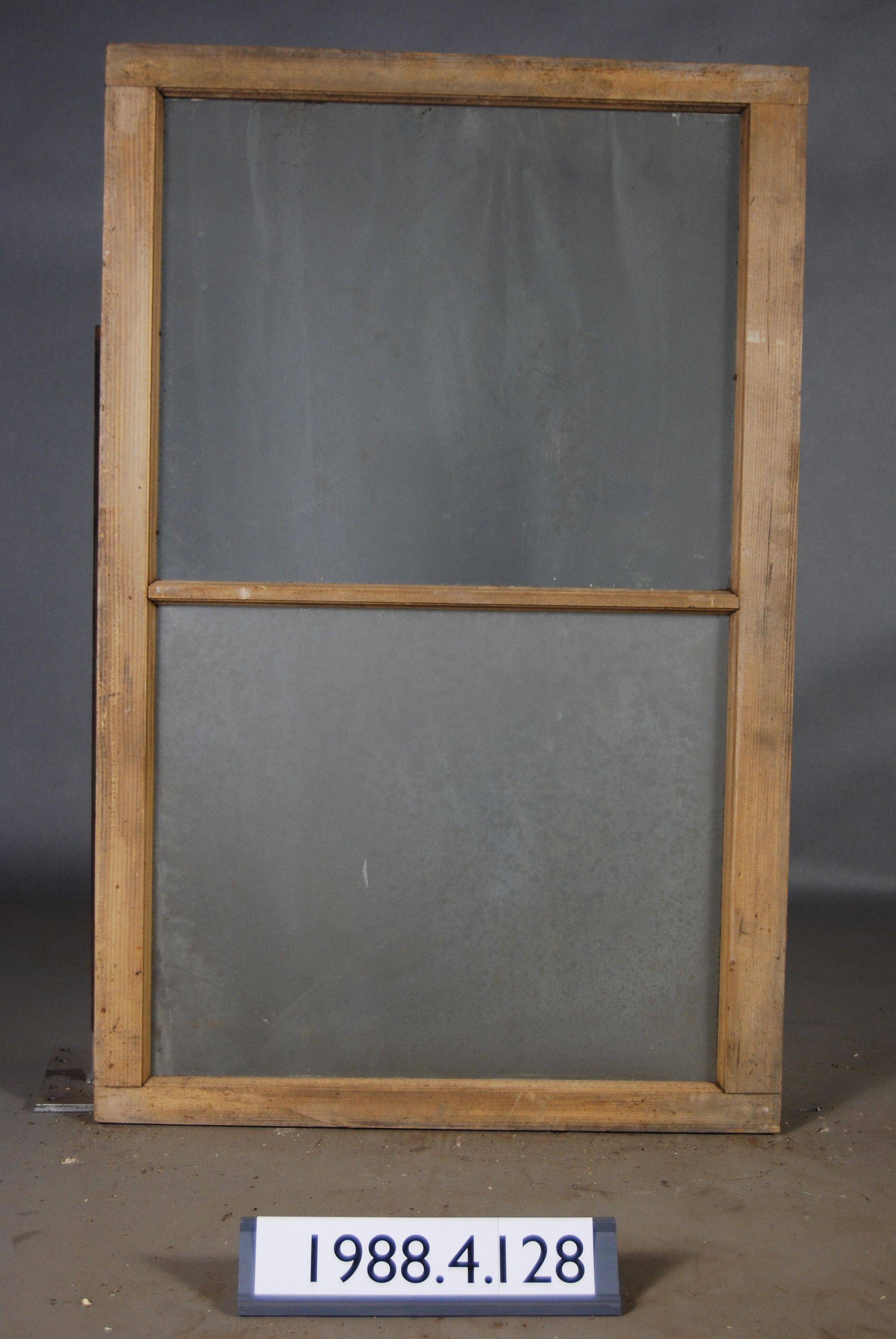 Rectangular. Mortice and tenon and coped joints. Two openings with complete glass panes. One pane is frosted. Type: Fixed sash. Inscriptions or Markings: Manufacturer: Place of Manufacturer: Design motif: Style: Finish: Unpainted.