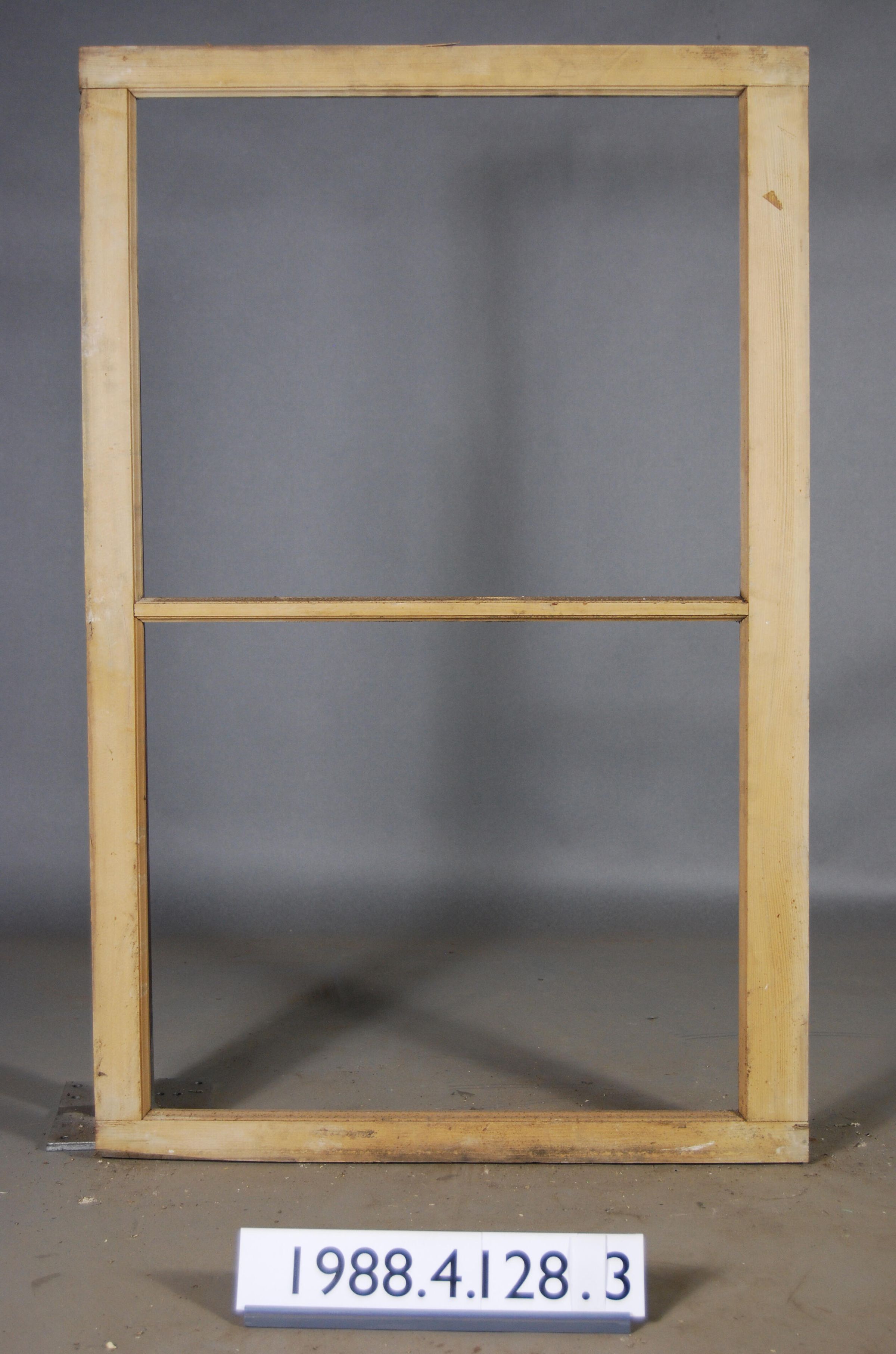 Rectangular. Mortice and tenon and coped joints. Two openings. Both glass panes missing. Type: Fixed sash. Inscriptions or Markings: Manufacturer: Place of Manufacturer: Design motif: Style: Finish: Unpainted.
