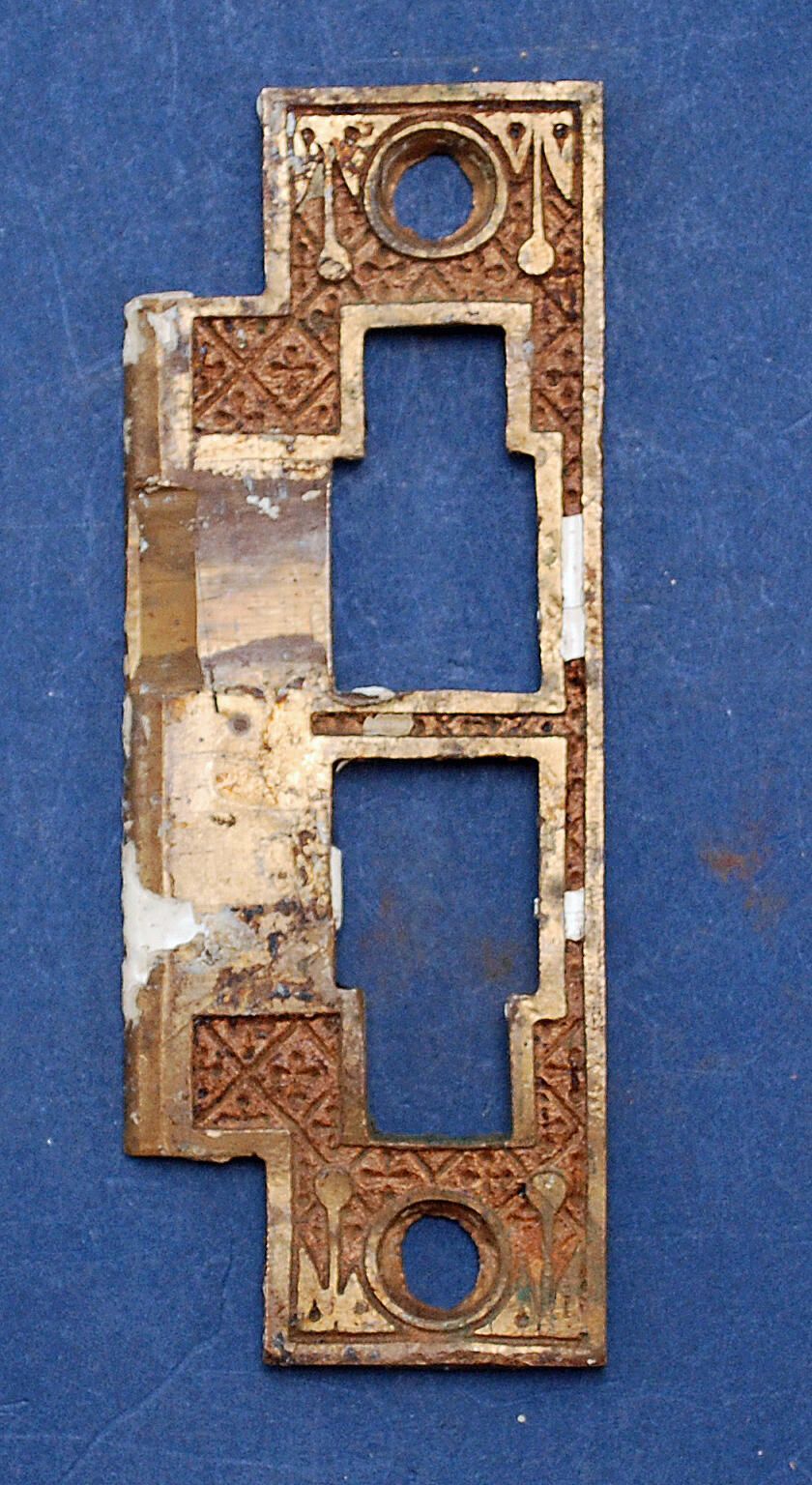 Design Name: Broken Leaf Manufacturer: Lockwood Mfg. Co. Style: Aesthetic Material: Bronze Manufacturing Method: Cast Surface Finish: Aged / Unpolished VDA Classification: VDA Number: Shape: Patent Specifics: Lock Type (If Applicable): Inscription/Makers Mark: Inscription Text: Comments: Worn. Bent.