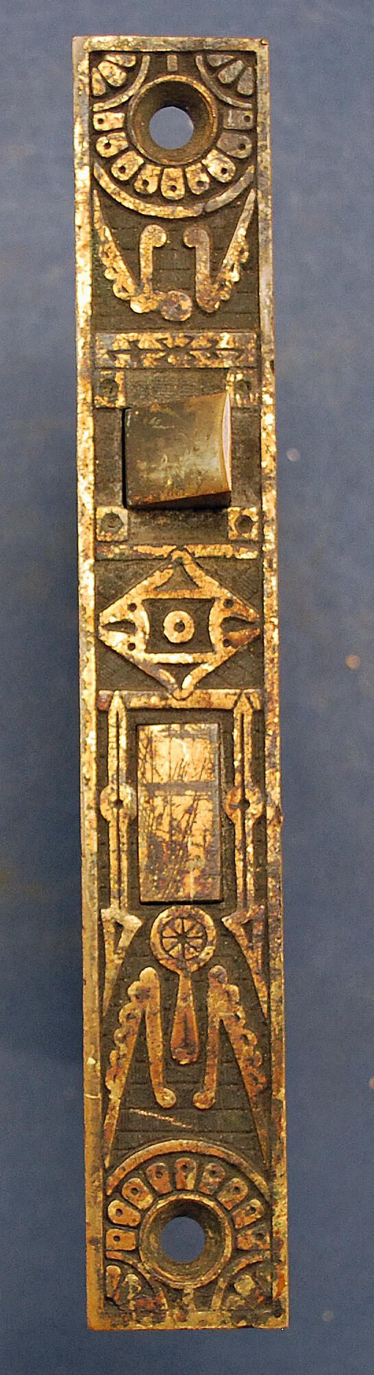 Comments: Ornamental Bronze Face Plate. Cast Iron Case With Japanned finish.
