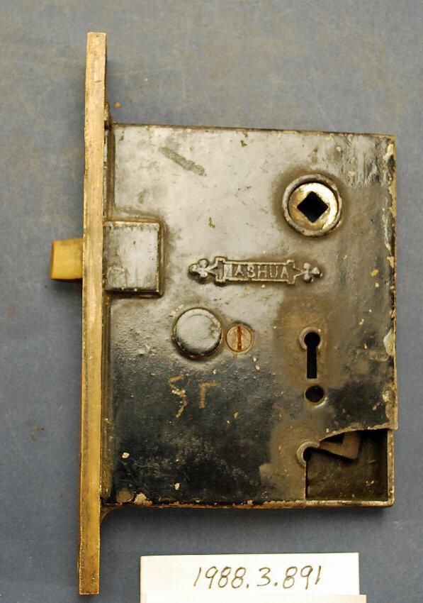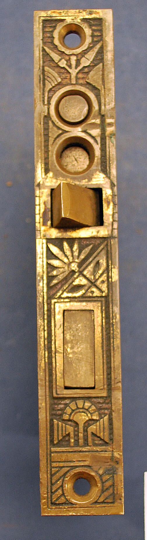 Comments: Dual Keyhole. (Ornamental Bronze Case). Face Plate, Cast Iron Case. Cover is Broken.