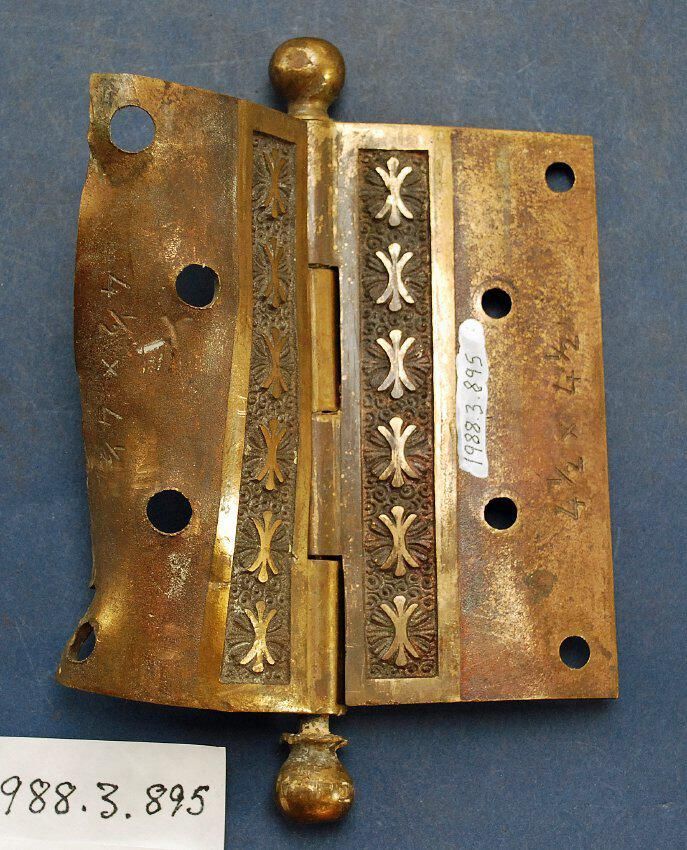 Design Name: Manufacturer: Nashua Lock Co. Style: Aesthetic Material: Bronze Manufacturing Method: Cast Surface Finish: Aged / Unpolished VDA Classification: VDA Number: Shape: Patent Specifics: Lock Type (If Applicable): Inscription/Makers Mark: Inscription Text: Comments: Bent. Distorted.. 4.5 x 4.5.