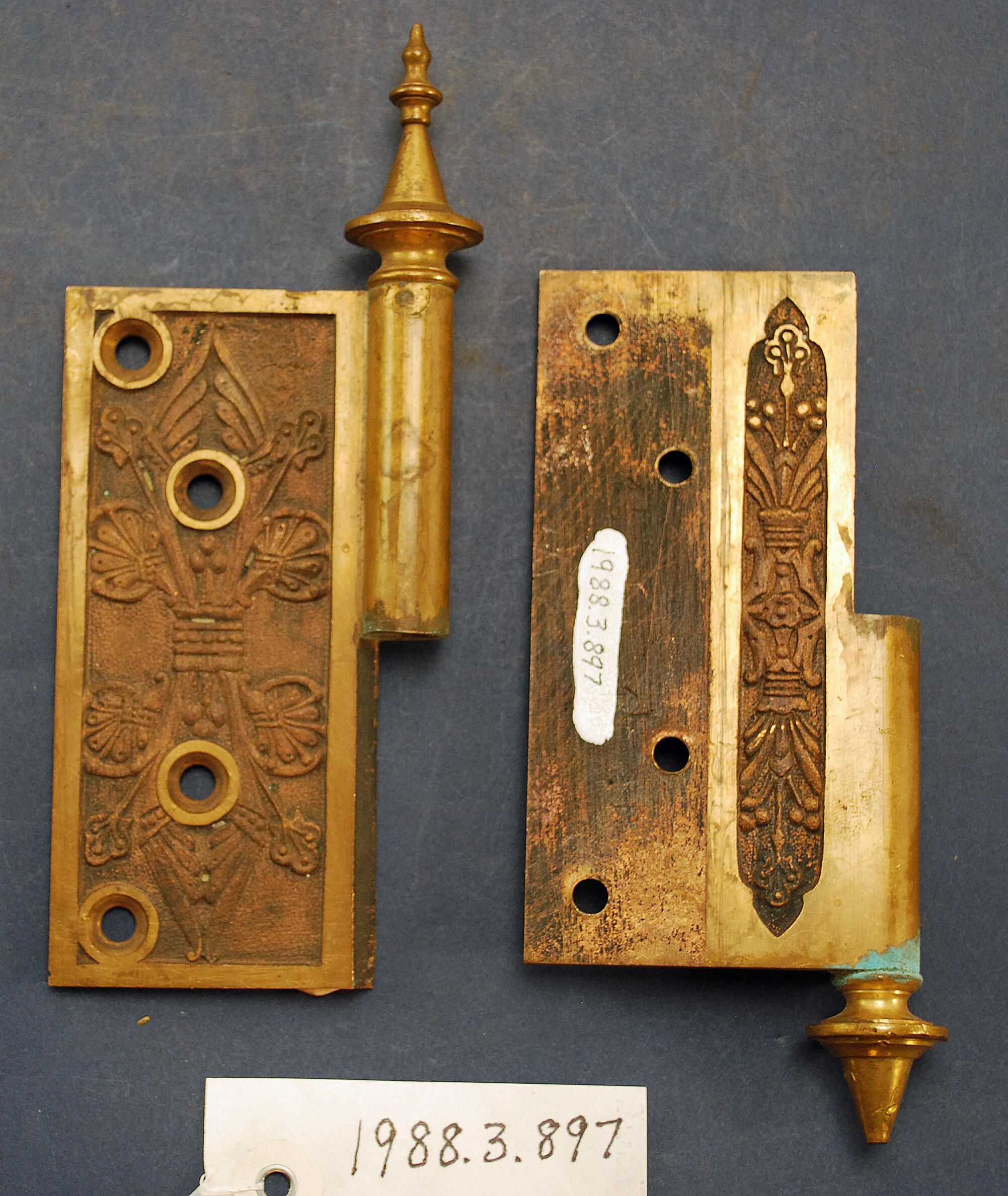 Design Name: Manufacturer: Newman Capron Mfg. Style: Renaissance Revival Material: Bronze Manufacturing Method: Cast Surface Finish: Aged / Unpolished VDA Classification: VDA Number: Shape: Patent Specifics: Lock Type (If Applicable): Inscription/Makers Mark: Inscription Text: Comments: Staple Tips. Threaded One Whole. Fixed One Broken.